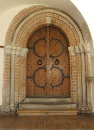 Portal wiodący z krużganków do prezbiterium kościoła.