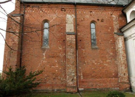 Do płn-zach narożnika nawy przylega romańsko-gotycka dzwonnica z ok.1260 roku pełniąca jednocześnie rolę baszty. Dzwonnica ma już polski układ cegieł.