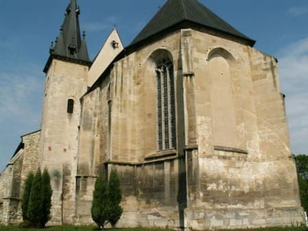 W połowie XV wieku dobudowano do niego od strony zachodniej duży gotycki korpus nawowy, przez co romańska nawa stała się prezbiterium, zaś wieże znalazły się w połowie długości świątyni.