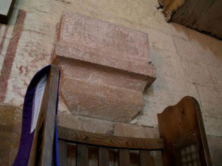 Zachowane są także oryginalne wsporniki sklepienia na wschodniej ścianie prezbiterium oraz w nawie wspornik empory. W kruchcie romańska chrzcielnica.