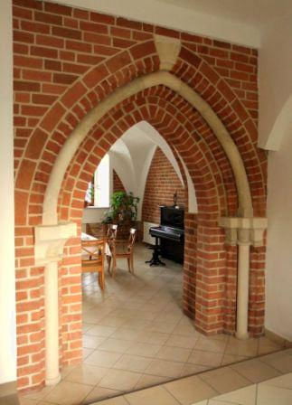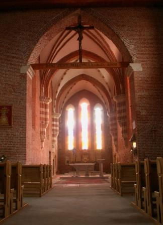 Ściana tęczowa i prezbiterium z masywnymi służkami.