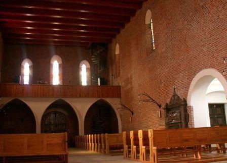Widok ogólny. Warto zwrócić uwagę na różnorodność kształtów okien. W zakrysti jeszcze okno romańskie, w ścianie wschodniej prezbiterium już wita nas wczesny gotyk.