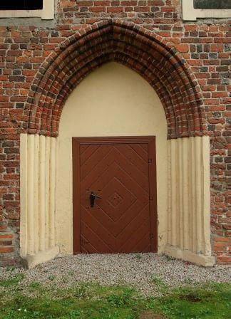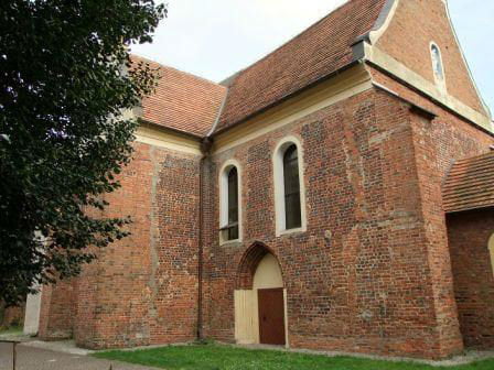 Zbudowany w 4 ćw. XIII wieku z cegły w układzie wendyjskim składał się z dwuprzęsłowej nawy, dwuprzęsłowego prezbiterium i transeptu. Na przedłużeniach murów proste przypory.