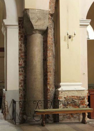 Eksponowana na wystawie romańska baza (in situ, ostatnie zdjęcie czcibora powyżej) należała do środkowej kolumny podpierającej emporę zachodnią.