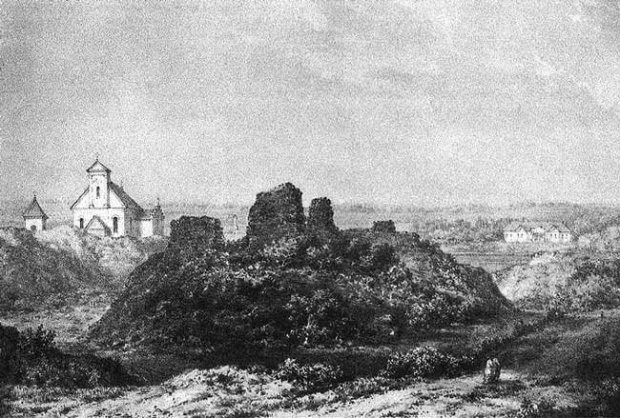 Ruiny zamku na rysunku Napoleona Ordy w XIX wieku