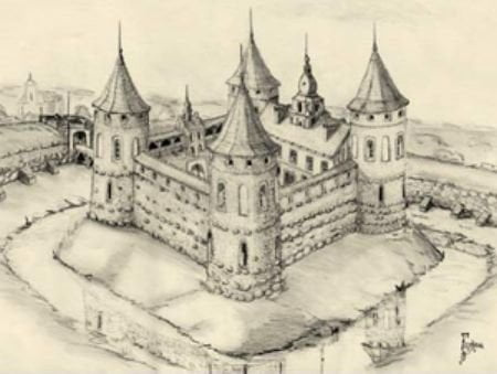 wizja zamku na rysunku Pryszczepa