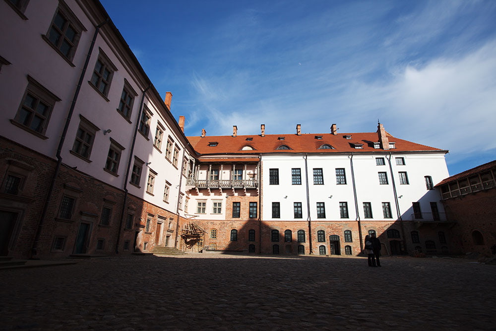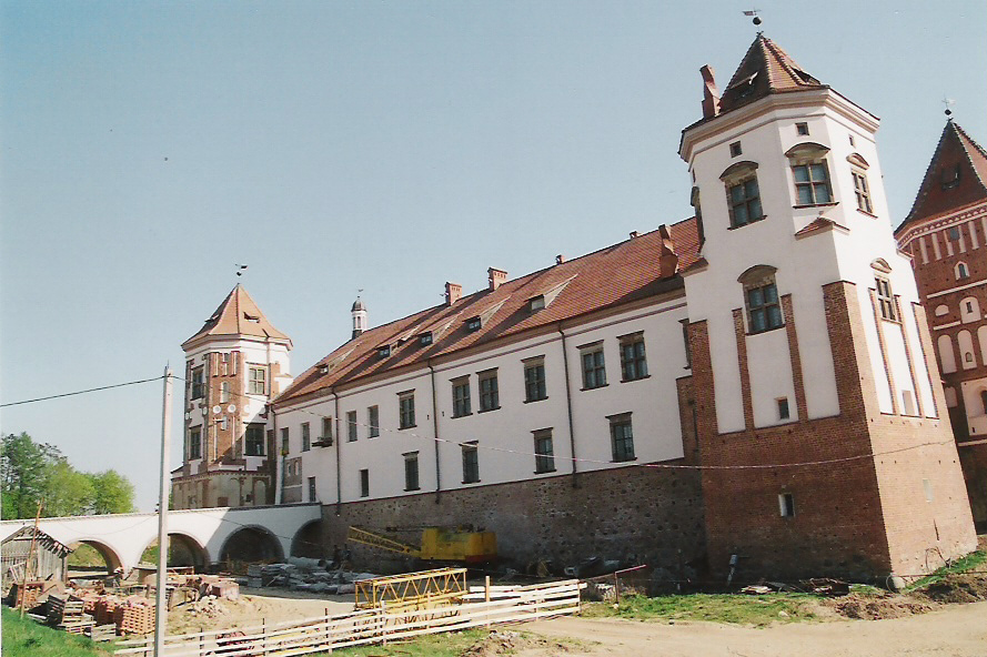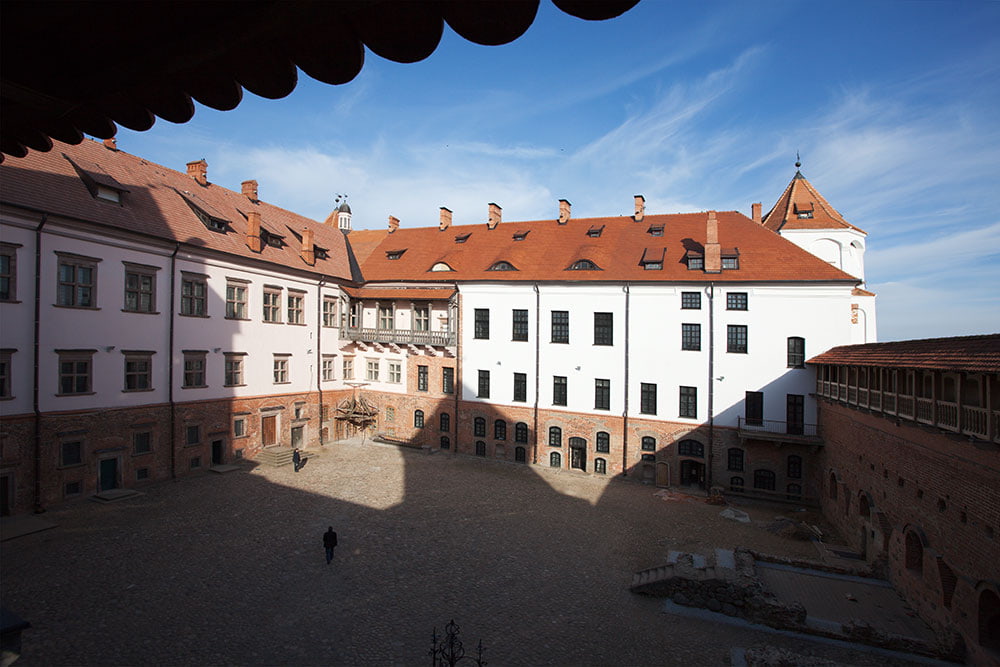 Budowę zamku rozpoczął na przełomie XV wiek i XVI wieku, w stylu gotyckim starosta brzeski i kowieński Jerzy Illinicz. Około 1568 r. mirski zamek na mocy testamentu wnuka Jerzego Illnicza przeszedł w ręce książąt Radziwiłłów, którzy przebudowali go w stylu renesansowym. Wzdłuż wschodnich i północnych ścian zamku powstał pałac. Gipsowe fasady zostały udekorowane wapiennymi portalami, płytami, balkonami i gankami.