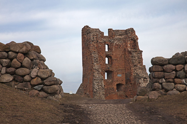 Zamek w Nowogródku został wybudowany przez Mendoga w poł. XIII w., który ustanowił tu stolicę państwa. Być może już za jego czasów na wzgórzu zamkowym stały jakieś budynki murowane. W 1314 komtur krzyżacki Heinrich von Plotzke bezkutecznie próbował zdobyć zamek. Zamek rozbudował po zniszczeniach Witold w roku 1415. Zamek wysadzili w powietrze Szwedzi w 1706 roku. Zachowały się ruiny dwóch wież: Szczytowej i Kościelnej, wały ziemne i głęboka fosa otaczająca zamek. Z zamkowej cerkwi zachowały się fundamenty.