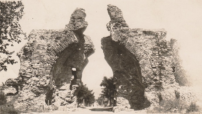 Jw. - przed restauracją łuków. Brama przypominała dwa stojące naprzeciw siebie wielbłądy, stąd nazwa Kamilite (po bułgarsku "wielbłądy")