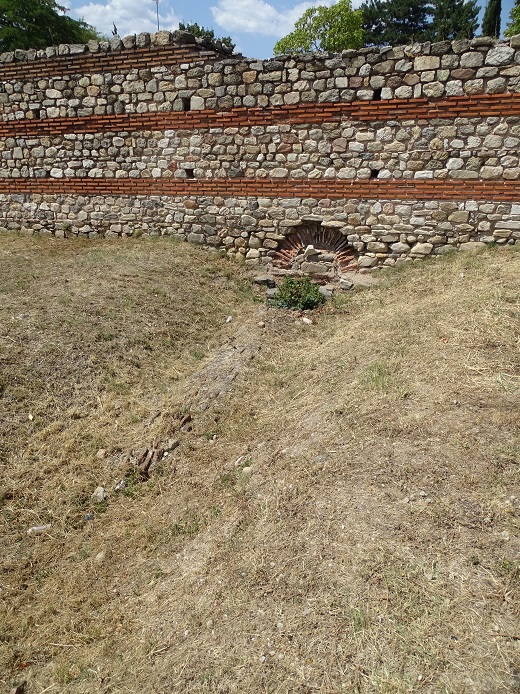 Przez mury przechodzą sklepione kanały wodne - akwedukt i kanał odwadniający.