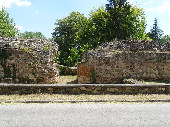 Faktycznie widoczne na powierzchni odcinki murów na tle współczesnej zabudowy Hisar