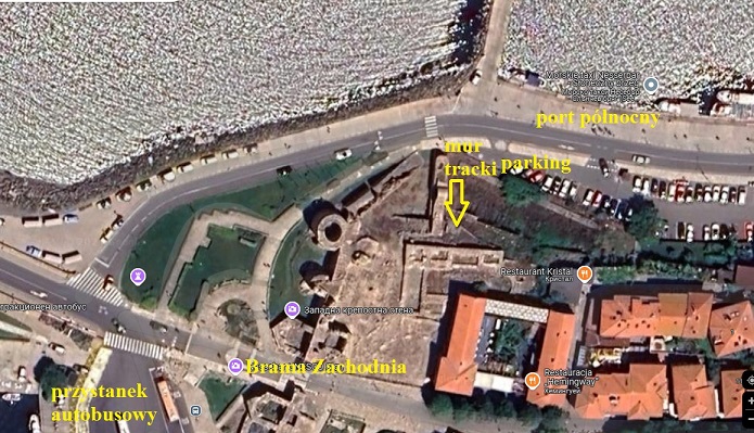 Lokalizacja muru trackiego na tle starówki Nessebyru