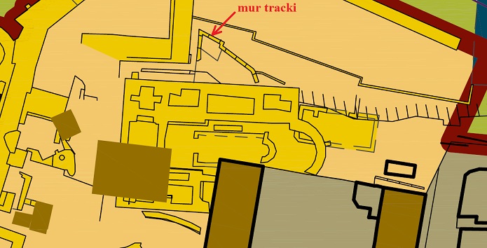Mur tracki wzniesiono z nieobrobionych kamieni łączonych zaprawą glinianą