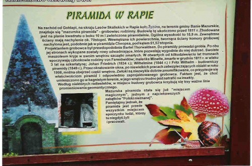 Grobowiec rodziny Farenheit z początku XIX wieku. Jedna z dwóch (przynajmniej mi znanych piramid-grobowców w Polsce). Znajduje się w miejscowości Rapa niedaleko Bań Mazurskich, tuż przy granicy z Rosją (obwód kaliningradzki).