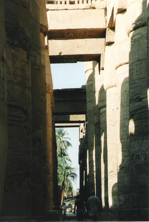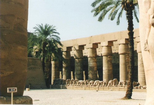 Miejscowość w Górnym Egipcie na wschodnim brzegu Nilu, 2,5 km na północ od Luksoru. W starożytności miejscowość była częścią Teb, a obecnie postrzegana jest przez wielu jako część Luksoru, jako że obie miejscowości tworzą zwarty zespół miejski. W 1979 Karnak został wpisany na Listę światowego dziedzictwa UNESCO. W Karnaku znajduje się zespół świątyń wzniesionych w różnym czasie, poświęconych bogom tebańskim. Centralne miejsce zajmuje największa na świecie świątynia z salą kolumnową - tzw. "Wielki Hypostyl" – świątynia Amona-Re. Od północy przylega do niej świątynia Montu – boga wojny, a na południe położone jest sanktuarium bogini Mut, żony Amona. Świątynie te są połączone ze sobą alejami procesyjnymi. Do świątyni Amona od strony Nilu do pierwszego pylonu prowadziła aleja procesyjna z 40 sfinksami o głowach barana (baran to święte zwierzę Amona). Przed każdym sfinksem, między jego łapami, ustawiono posąg faraona. Za pierwszym pylonem znajdował się wielki dziedziniec oddzielony od sali hypostylowej drugim pylonem, przed którym ustawiono wyrzeźbione w różowym granicie posągi Ramzesa II. Przed nim znajduje się postać jego żony, sięgająca faraonowi do kolan. Sala hypostylowa o wymiarach 102x53 m podparta jest 134 kolumnami, najwyższe o wysokości 23 m zakończone są kapitelami w kształcie rozwiniętego kwiatu papirusu. Kolumny niższe, ustawione w 14 rzędach, mają głowice o zamkniętych kwiatach papirusu. Różnica poziomów pomiędzy kolumnami pozwoliła na zamontowanie okien oświetlających wnętrze sali. Ściany i trzony kolumn ozdobiono bogatymi reliefami. Ta część świątyni została wzniesiona za czasów XIX dynastii. Za salą hypostylową znajdują się kolejne pylony (czy i cztery) oraz starsza część świątyni, wzniesiona za czasów XVII dynastii. W kompleksie ustawiono także obeliski przy pylonach: dwa na polecenie Hatszepsut o wysokości ponad 30 m (jeden z nich zachował się na miejscu, pozostałości drugiego można znaleźć w pobliżu świętej sadzawki) oraz cztery o wysokości 23 m na polecenie Totmesa (zachował się tylko jeden). Pylonów w sumie jest sześć, przy ostatnim znajduje się kaplica na barkę obrzędową. Świątynia Amona połączona była długą kamienną aleją sfinksów ze Świątynią Narodzin w Luksorze. Przy alei wzniesiono sześć małych kapliczek. Podczas święta Opet posąg Amona w Karnaku odwiedzał świątynię w Luksorze – był niesiony w barce kultowej wzdłuż alei, a wracał drogą wodną – Nilem. Reliefy przedstawiające to święto są umieszczone w kaplicy Hatszepsut, zbudowanej z czerwonego kwarcytu i czarnego granitu, przeznaczonej na kiosk do przechowywania barek obrzędowych. Sama świątynia Amona-Re to zespół budowli wzniesionych w okresie Nowego Państwa i czasach późniejszych. Do kompleksu należą: świątynia Ptaha z czasów XVIII dynastii oraz wielka świątynia Amona-Re z czasów XVIII i XIX dynastii. Z okresu XX dynastii pochodzą: świątynia Ramzesa III (świątynia jubileuszu) oraz świątynia Chonsu. W XXV dynastii, za czasów króla Taharki, powstała kolumnada wzdłuż osi dziedzińca, z której zachowała się do naszych czasów tylko jedna kolumna. Do kompleksu świątynnego należy także święta sadzawka. Przy niej za czasów Amenhotepa postawiony został pomnik wielkiego skarabeusza. Karnak niszczony był już od schyłku starożytności przez Koptów, w Średniowieczu przez islamskich fanatyków, traktowany jako źródło kamienia służącego do wypalania wapna lub do budowy wszelkich arabskich konstrukcji. Od czasów starożytnych poziom wód gruntowych podniósł się w rejonie tebańskim o około 3 m. Każdego lata wody wylewającego Nilu wdzierały się do świątyni pogarszając stabilność budowli (właśnie z tego powodu w 1861 r. zawaliła się jedna z kolumn). O istnieniu świątyń Karnaku Europejczycy dowiedzieli się w XVII wieku. Były zwiedzane przez wszystkich którzy odwiedzali Teby i opisywane w wielu książkach. Paradoksem jest jednak fakt, że Karnak należał do ostatnich miejsc na terenie starożytnej stolicy, które poddano systematycznym badaniom naukowym. Przyczyną tego stanu rzeczy był ogrom budowli i przestrzeni, na której świątynie się rozpościerały. Wykopaliska na tym terenie wymagały ogromnej ilości robotników i specjalistów nimi kierujących. Pierwsze rysunki pozostawił po sobie kapitan Norden, który odkrył ponownie Karnak w XVIII wieku, natomiast pierwszy plan wykonał podróżnik Pococke. Pierwszy etap badań zainaugurowała wyprawa Napoleona w 1798 roku, której wyniki opublikowano później w Description de l'Égypte. W 1828 roku badania prowadził tam Champollion. Niestety od momentu otwarcia Egiptu na Europę przez Mohammeda Alego postępował proceder wywożenia zabytków. Stan zniszczenia świątyni zwiększały również eksploracja prowadzona przez chłopów w celu wydobycia sebachu używanego do nawożenia pól. Mimo wydanych w 1835 roku ustaw o ochronie zabytków starożytnych, jeszcze przez pięć lat pylony drogi procesyjnej służyły ludności jako kamieniołom. W 1843 roku Prisse d`Avennes wywiózł cenne reliefy z Komnaty Przodków do Luwru. Naukowe odsłanianie świątyń rozpoczął dopiero Auguste Mariette w latach 1858-1860 a następnie w 1875 r. opublikował dwa tomy swoich prac pod tytułem Karnak, étude topographique et archéologique, przedstawiając w nich pierwszy historyczny plan z ukazaniem ewolucji świątyń. W latach 1896-1917 pracami w Karnaku kierował Georges Legrain. Doprowadził do końca restaurację i anastylozę sali hypostylowej, odsłonił skrytkę na dziedzińcu VII pylonu, dziedziniec pierwszego pylonu o świątynie-repozytoria Ramzesa III i Setiego II. Sprawozdania opublikował w Annales du Service des Antiquités de l`Égypte, oraz w jednym z najważniejszych francuskich czasopism egiptologicznych tamtych czasów,