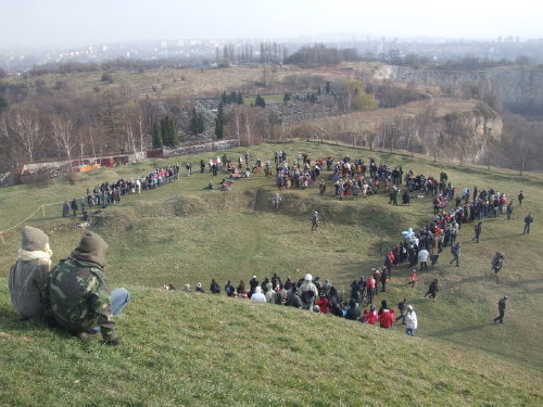 12.00 Rozpoczęcie imprezy (Obrzęd Przywitania Wiosny: rozpalenie ognia oraz toczenie jaj i kołacz z kopca Krakusa)