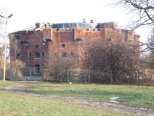 Wejście do kościoła jest główne, jedyne. To co widać to efekt restauracji z 1598r. Pierwotnie była to oczywiście rotunda, datują ją nawet na X wiek. Kościół parokrotnie był przebudowywany do obecnej postaci. W najstarszej warstwie odkryto pozostałości dwóch murów, które prawdopodobnie są pozostałością po budynku pałacowym połączonym ze świątynią. Założenie jest bardzo podobne do tego z Wawelu z tego okresu i są hipotezy o możliwości istnienia w tym miejscu równorzędnego Wawelowi ośrodka władzy. Kościółek cudem uniknął wyburzenia (był już do tego przeznaczony) w czasie zaborów (w tym okresie w Krakowie wyburzono ok. 20 kościołów, często bardzo starych 🙁 ). Pamiątką po tym okresie jest ten duży ceglany fort, też św. Benedykta. Jest to unikatowy w skali Europy, jedyny w Polsce fort wieżowy.