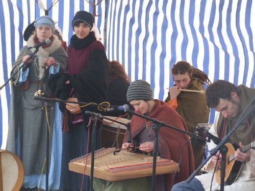 Będę starał się dotrzeć. Rok temu chyba ten sam zespół był. Grają taki "prasłowiański folk". Niestety nagłośnienie im się psuło. Kaset czy płyt nie widziałem, ale też nie pytałem o nie.