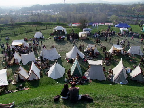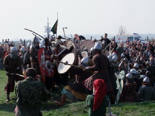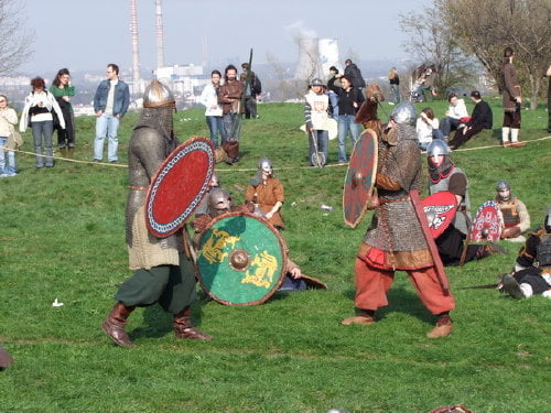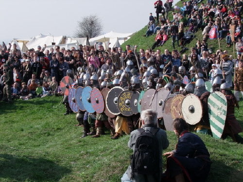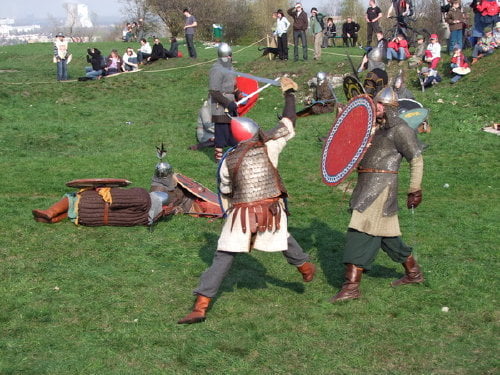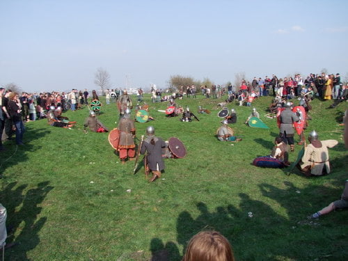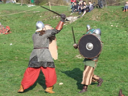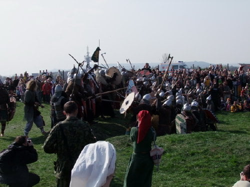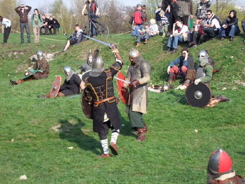 pokazów walk, prezentacji uzbrojenia i życia z okresu wczesnego średniowiecza.