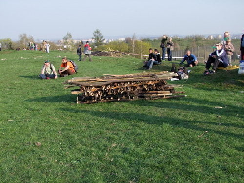 (Obrzęd Przywitania Wiosny: rozpalenie ognia oraz toczenie jaj i kołaczy z kopca Krakusa)