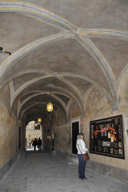 Na skalnej ostrodze znajduje się potężny Horní Hrad – Górny Zamek do którego w czasach budowy wchodziło się przez gotycką wieżę "Máslenice" i drewniany most. Po zbudowaniu nowego wjazdu do Górnego Zamku wieżę przebudowano w stylu renesansowym. W okresie baroku powstały nowe budowle – "Mincovna" Mennica i "Nové purkrabství" Nowa Kasztelania. Później kontynuowano rozbudowę zamku w kierunku zachodnim.