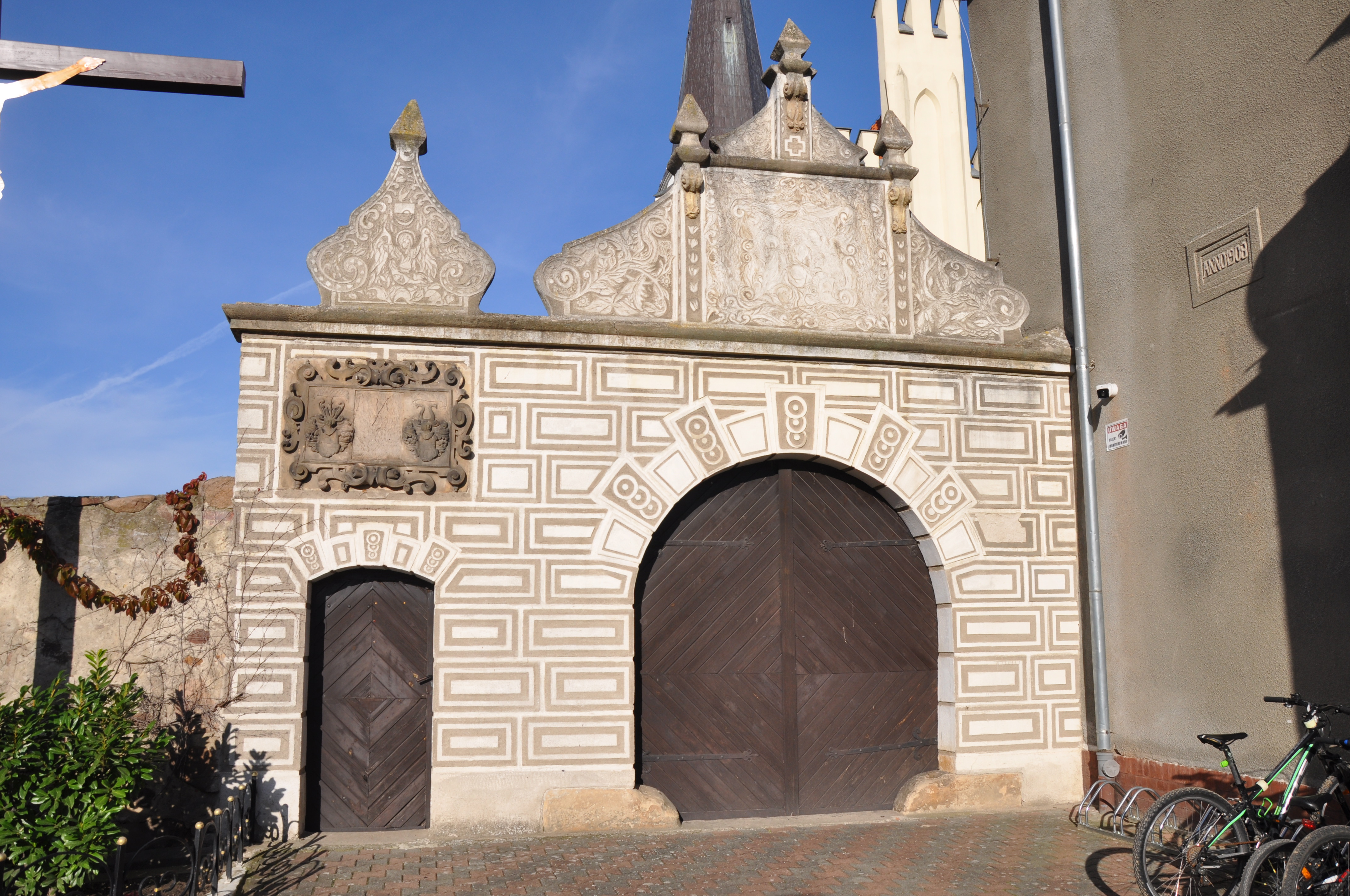 We wsi znajduje się gotycki kościół parafialny p.w. św. Józefa zbudowany w XIV w, a przebudowany w XVI w. W czasie bitwy w 1757 w bardzo znacznym stopniu zniszczony, a następnie odbudowany. Z gotyckiego wyposażenia przetrwało kamienne sakramentarium z XV w i figura św. Anny Samotrzeciej z początku XVI. Pod koniec XVIII w zbudowano klasycystyczną ambonę. Świątynię i przykościelny cmentarz otacza mur obronny z cylindrycznymi bastejami na narożach (1608 r.) z kamienia polnego (wys. 2,8 m i grubość 0,85 m) ze strzelnicami