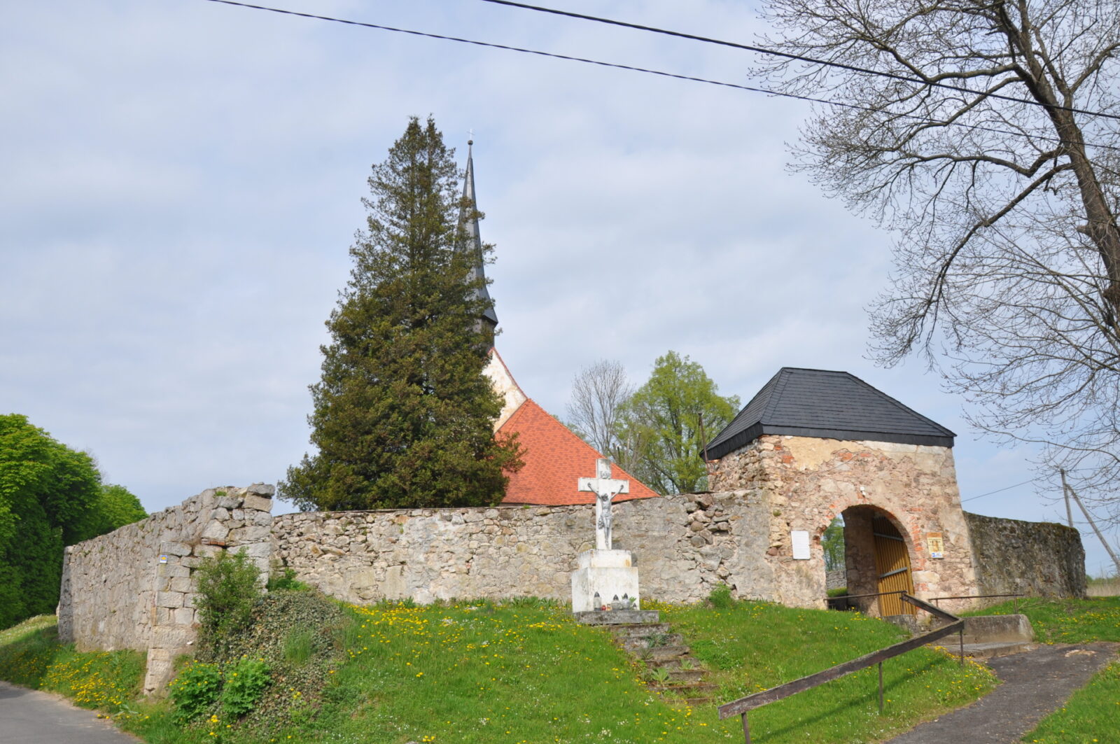 kościół filialny pw. św. Jadwigi, romański wymieniony po raz pierwszy w r. 1305, spłonął w r. 1515, na nowo został wzniesiony w 1520 r., w 1534 r. – przejęty przez luteran, przekazany katolikom na powrót w 1654 r., przebudowany był w 1551 r., restaurowany w XIX wieku. Wystrój barokowy. Gotycki portal zachodniej kruchty, w kruchcie późnogotycki, częściowo zniszczony tryptyk z pocz. XVI w. Późnogotyckie sakramentarium w prezbiterium. Renesansowy portal kruchty północnej z ok. 1551. Na kamiennej chrzcielnicy napis: W roku 1515 spłonął kościół. Przed wejściem północnym data 1551 i napis pastor Wincent Frydreich z Bolesławca ukończył budowlę oraz cytat z Ewangelii Mateusza 6.33 Starajcie się naprzód o królestwo i o Jego sprawiedliwość a to wszystko będzie wam dane. Ołtarze główny i boczne barokowe