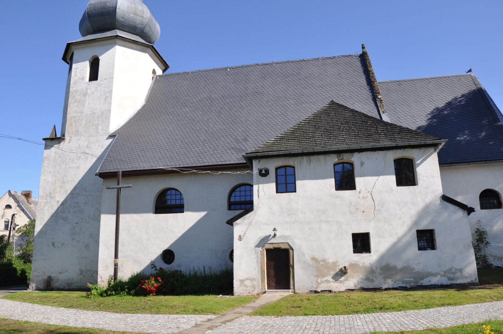 Został wzniesiony w początkach XVI wieku, na miejscu poprzedniej, XIV-wiecznej świątyni. Budynek jednonawowy, z 30-metrową wieżą, wydzielonym prezbiterium, o sklepieniu krzyżowo-żebrowym, zachowana część muru z dawną bramą
