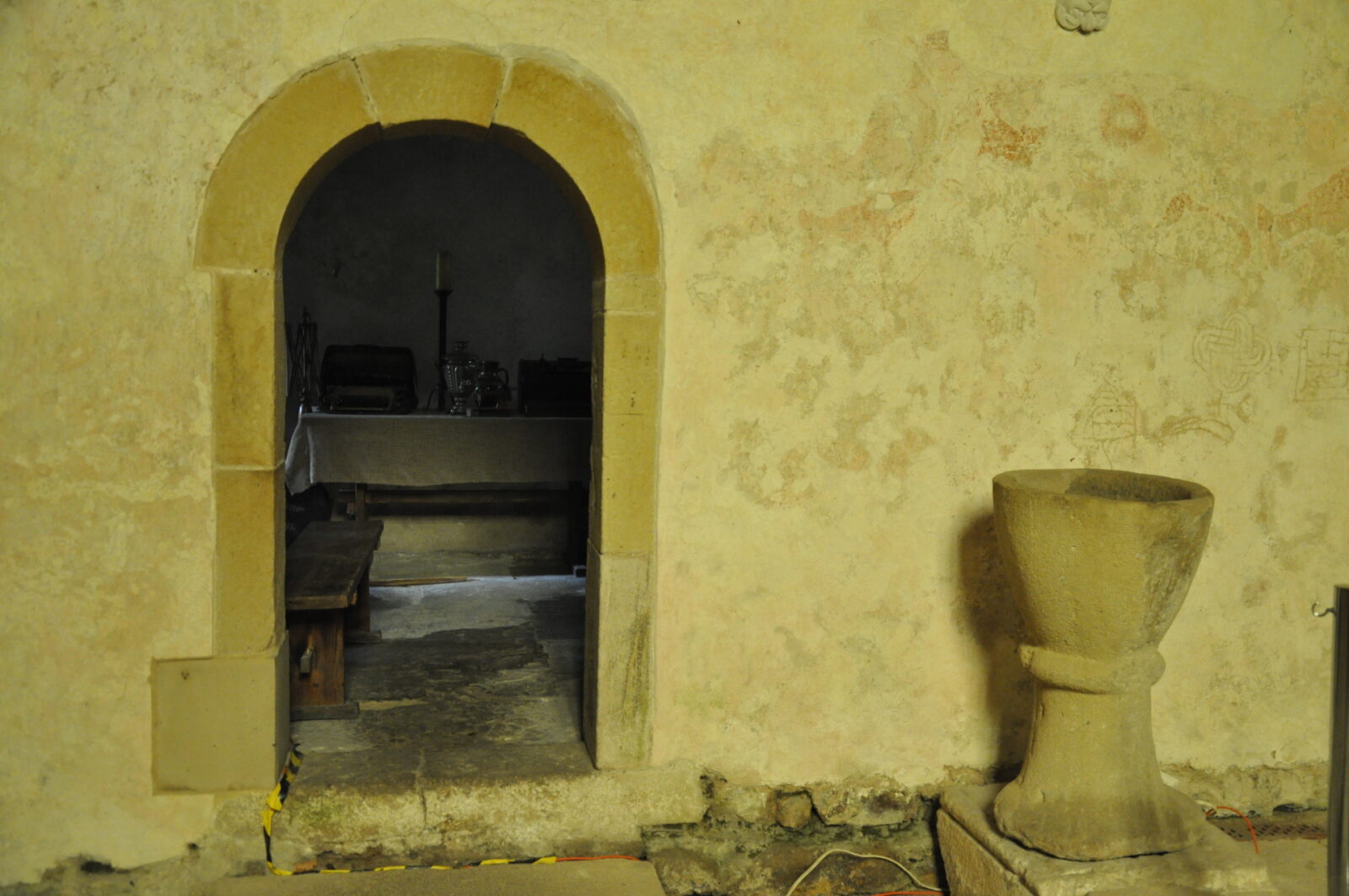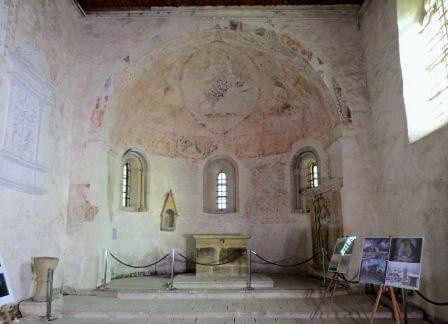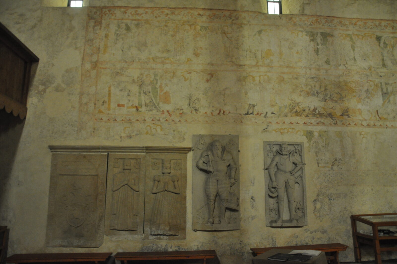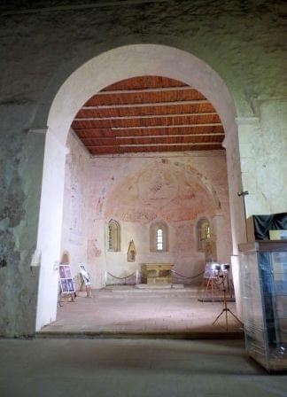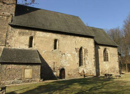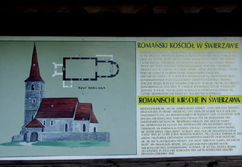 Kościół w pierwotnej formie powstał przed 1230 rokiem, na co wskazuje forma portalu zachodniego. Nieco późniejsza, ale jeszcze z I poł. XIII wieku jest kamieniarka użyta wtórnie m.in. w oknach apsydy, co spowodowało uszkodzenie polichromii i konieczność wykonania kolejnej.