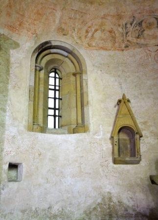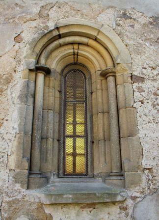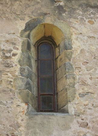 Galeria okienek. Pierwsze trzy zdjęcia przedstawiają okienka z apsydy, ostatnie przedstawia okno w nawie.