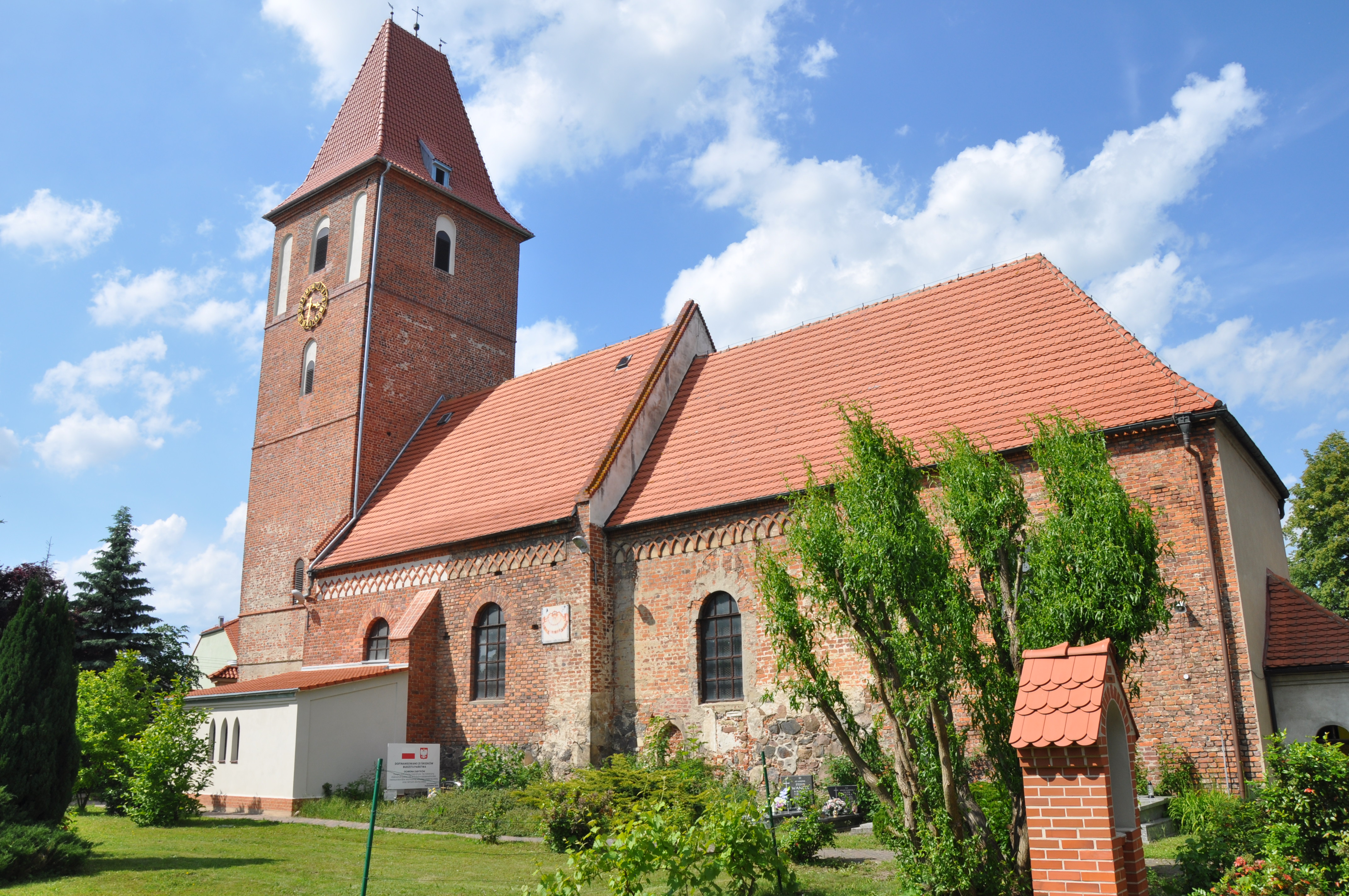 Kościół obronny św. Katarzyny Aleksandryjskiej, został zbudowany w XIII wieku. Wieża kościelna znacznie jest znacznie młodsza i zostala dobudowana w XV wieku. Mur obronny wokół kościoła i cmentarza pochodzą z początku XVII wieku. Świątynia została mocno uszkodzona w 1720 roku, następnie przebudowana i znów uszkodzona w 1945 roku.