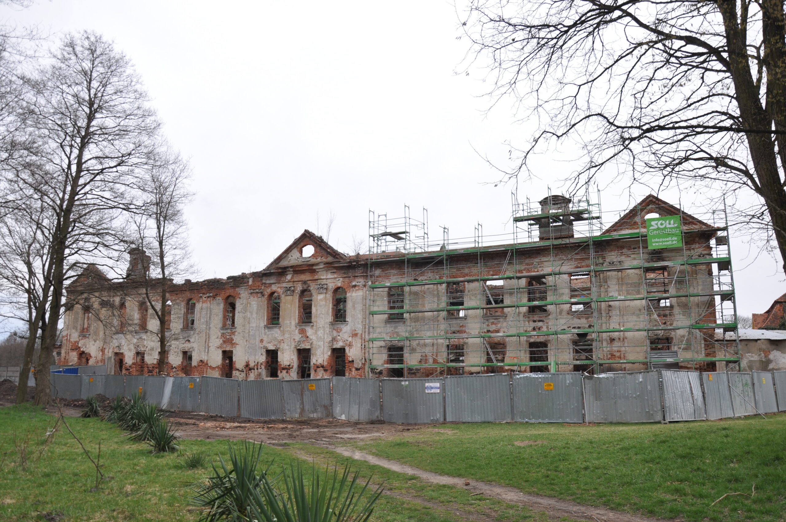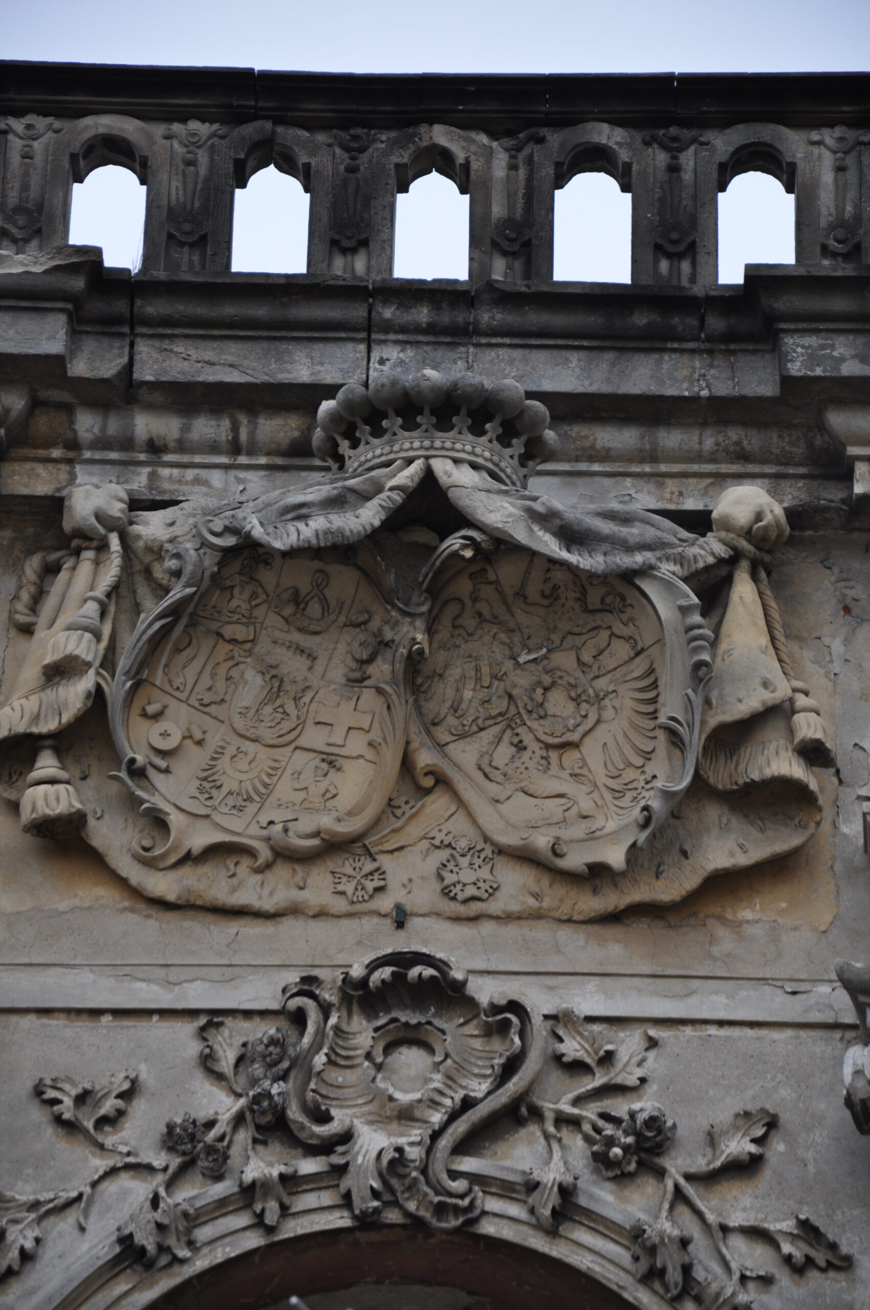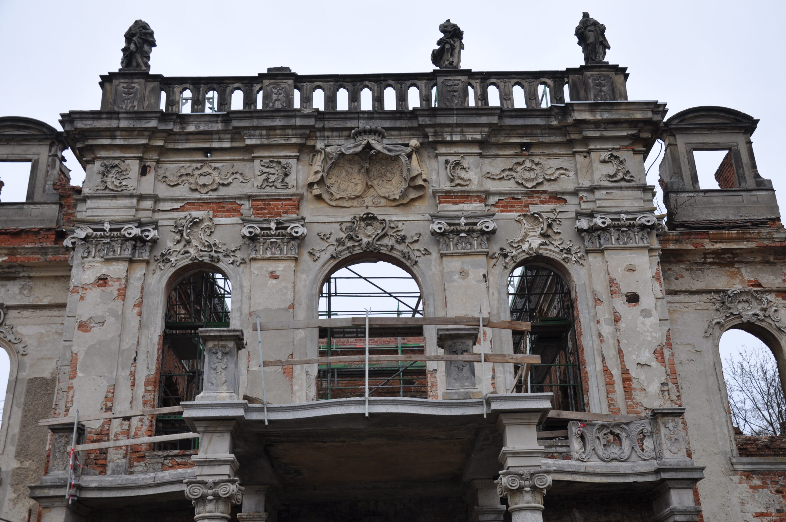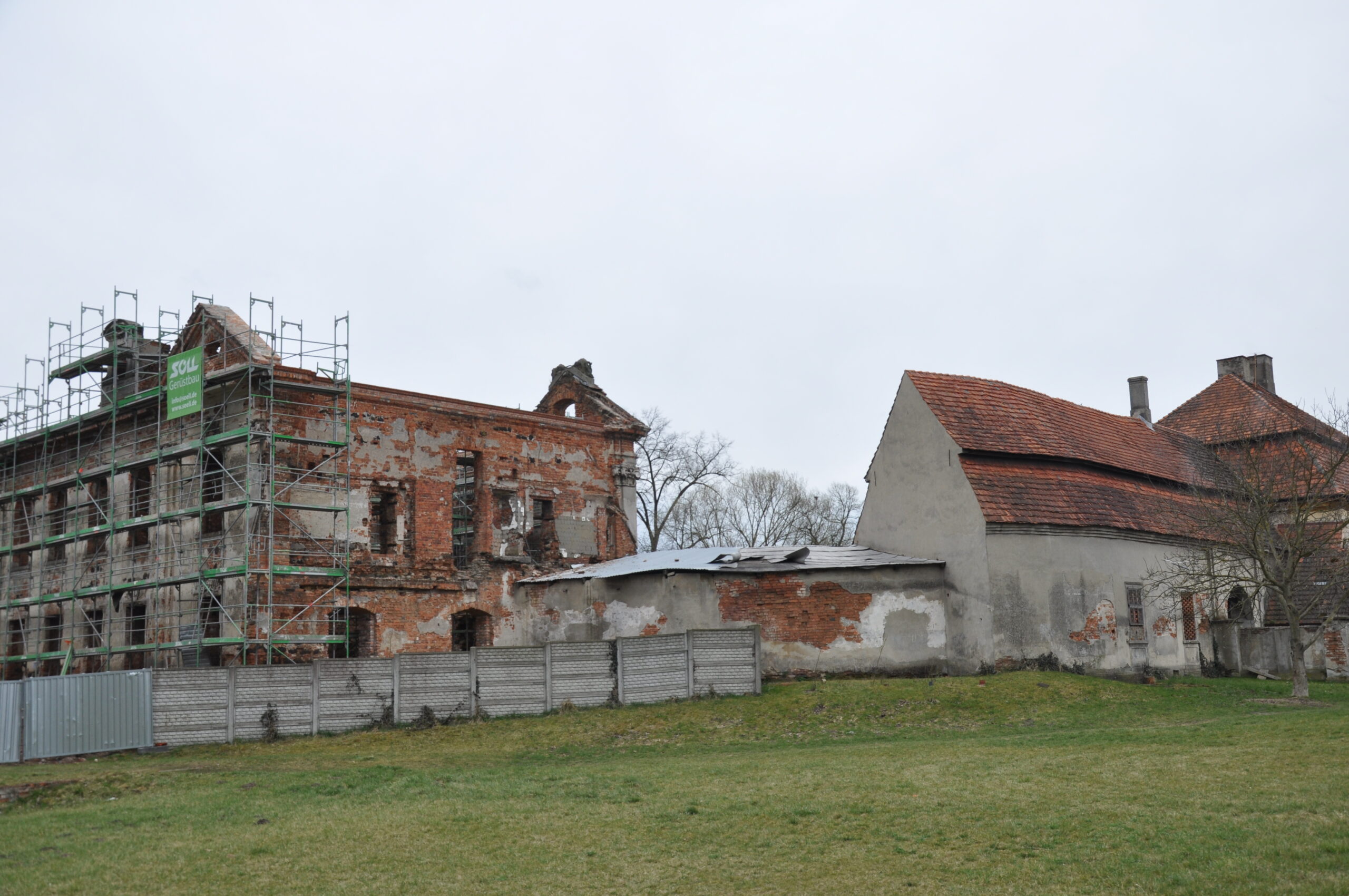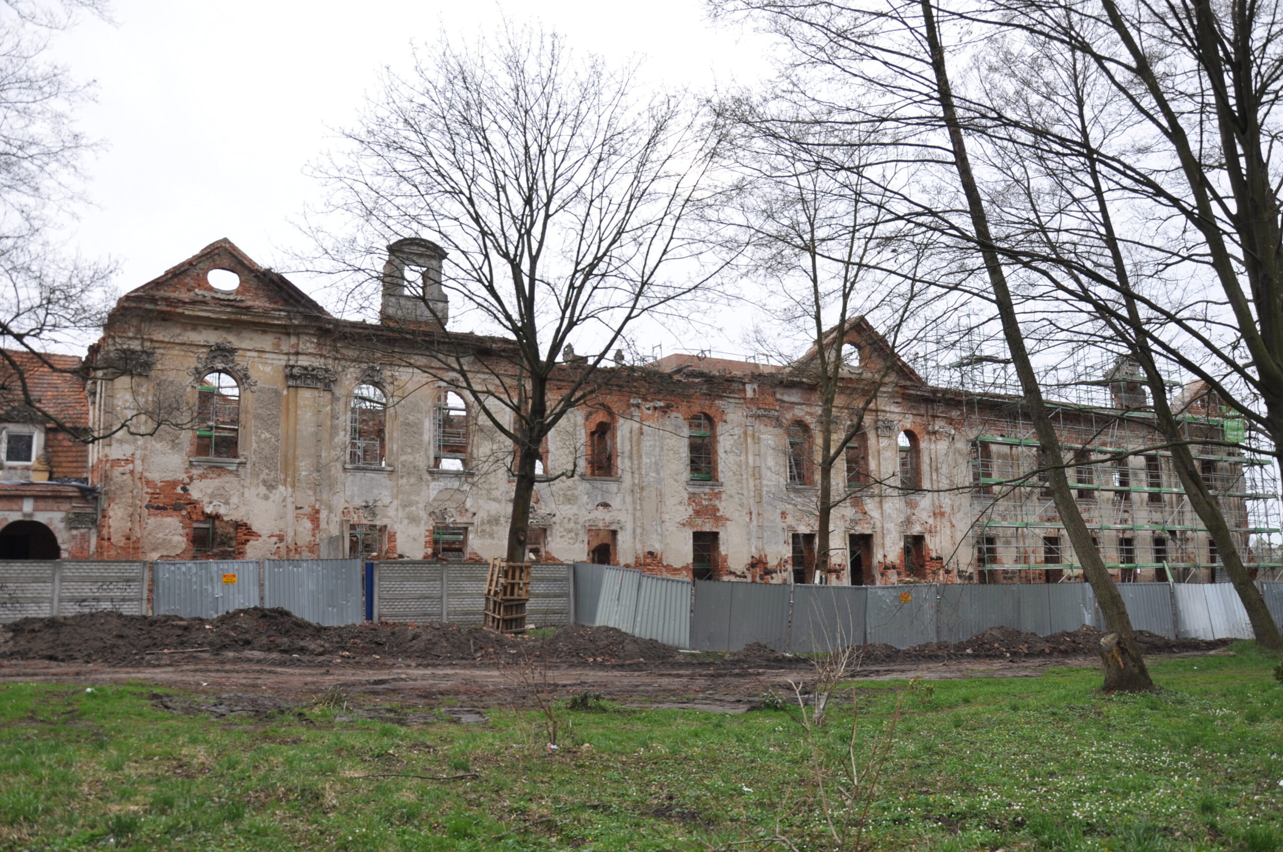 W ruinach śladu renesansowej architektury nie zauważył, pałac rokokowy, zabudowa dziedzińca i kościół dworski barokowe. Piwnice nie były dostępne (wejścia zasypane śmieciami).
