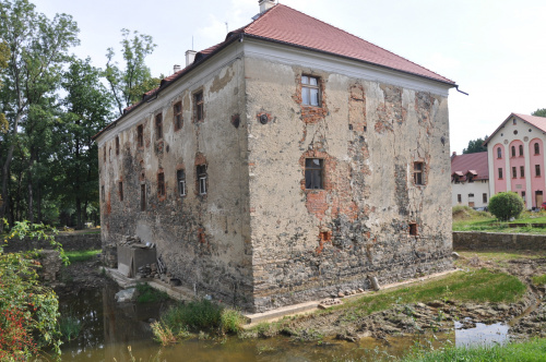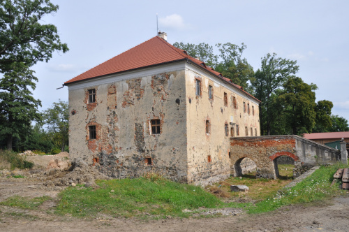 Renesansowy, obronny dwór nawodny wzniósł w 1546 r. Nikolas von Gellhorn. Świadczy o tym inskrypcja fundacyjna na głównym portalu. Dwór był przebudowywany i remontowany m.in. w XVII i XVIII w., oraz gruntownie w 1844 r. Dwór ten znajduje się w centrum wsi, po wsch. stronie drogi z Sobótki na Przełęcz Tąpadła. Budynek otacza fosa wypełniona wodą (z leżącego obok stawu). Zasadniczy element obronny stanowią strzelnice, umieszczone parami w ścianach budynku, w przyziemiu. Osie strzelnic skierowane są ukośnie w stosunku do linii muru, w parze w przeciwnych kierunkach. Po 1945 r. budynek dworu popada w częsciową ruinę. Obecny, prywatny własciciel adaptuje dwór na cele hotelarskie. Portal dworu zdobią rozetki i motywy bukietów kwiatów, a na belce nadproża znajduje się herb fundatora i inskrypcja: GOTT VNSERE HERE LOP DANCK VND EHRE NICKEL GALHOR 1546 (Bogu, Panu naszemu, chwała, dzięki i cześć, Nickel Gellhorn 1546). Na płn. i wsch. od dworu położony jest niewielki (2,7 ha) zaniedbany park z ok. 120-letnim drzewostanem. (źr. w częsci: http://www.skps.wroclaw.pl)
