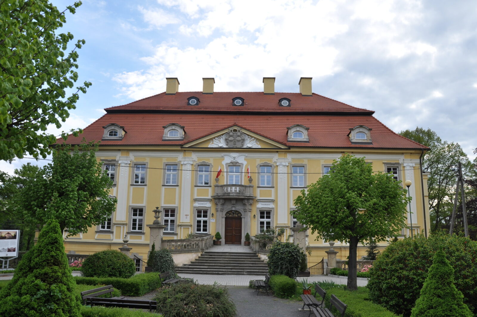 We wsi znajduje się renesansowy dwór obronny z XVI wieku (z ok. 1530 roku), przebudowany w XVII wieku na styl barokowy. Jest to obecnie pałac dwukondygnacyjny , przykryty mansardowym dachem. Obecnie służy on jako zespół szkół ponadgimnazjalnych.