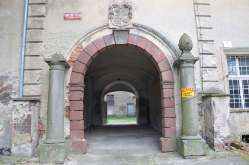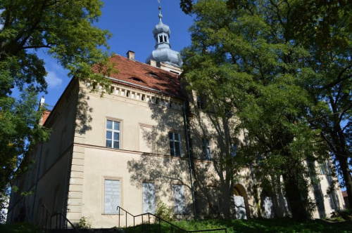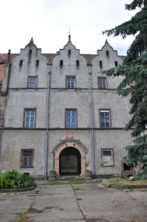 We wsi znajduje się renesansowy dwór wzniesiony w miejscu dawnego, rycerskiego dworu. Pod koniec XVII wieku dwór został przebudowany w stylu barokowym, kolejne przebudowy nastąpily w XIX wieku. Obecny pałac założony jest na planie czworoboku, posiada wewnętrzny dziedziniec, na który prowadza dwie bramy przejazdów, ozdobione portalami i kartuszami herbowymi (od strony drogi, herb Strachwitzów, od strony północnej herby Saurmów i Vogtów). Na dziedzińcu widoczny jest jeszcze fragment dawnego, renesansowego krużganka, obecnie zamurowanego.