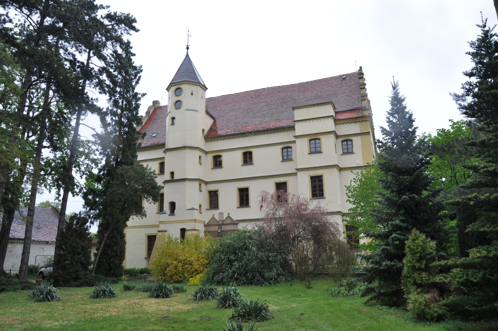 Dwór obronny znajduje się na niewielkim, naturalnym wzniesieniu opadającym w kierunku starorzecza Odry w zachodniej części wsi. Renesansowy dwór zbudowany został z kamienia i cegły na planie prostokąta o wymiarach 22x31m prawdopodobnie na miejscu starszego założenia obronno-rezydencjonalnego. Pierwotnie obiekt ten powstał jako założenie jednotraktowe, którego rozplanowanie już w czasie budowy lub nieco później zmieniono dostawiając od zachodu drugi równoległy trakt. Dwór od strony południowej ma niewielką basztę a od południa i zachodu dwa erkery. W piwnicach zachowane są sklepienia kolebkowe w dwóch pomieszczeniach wspartych na filarach. Na poziomie parteru są trzy pomieszczenia przekryte renesansowymi sklepieniami sieciowymi, w erkerach sklepienia krzyżowe i kryształowe. Na drugiej kondygnacji pomieszczenie kryte jest renesansowym profilowanym stropem belkowym z rzeźbionym podciągiem wspartym na przyściennych kolumnach. W południowej elewacji frontowej zachowany jest piaskowcowy portal z inskrypcją i datą 1559. Wewnątrz budynku jest zwornik z datą 1558.