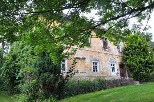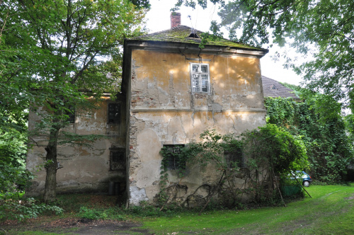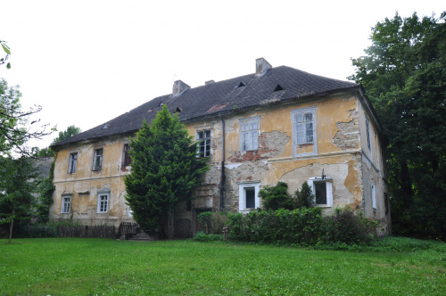 Pałac, obecnie barokowy, pierwotnie wzniesiony zapewne jako renesansowy dwór w l połowie XVII wieku., obecny, barokowy, pochodzi z XVIII wieku. Częściowo przebudowany w XIX wieku. Założony na prostokącie z tylną dobudówką, dwutraktowy, dwukondygnacjowy, nakryty dachem, czterospadowym. Prócz sklepionych wnętrz w parterze, zachował umieszczone obok wejścia dwie figury herm z 1. połowy XVII wieku, które pochodzą z renesansowego dworu.