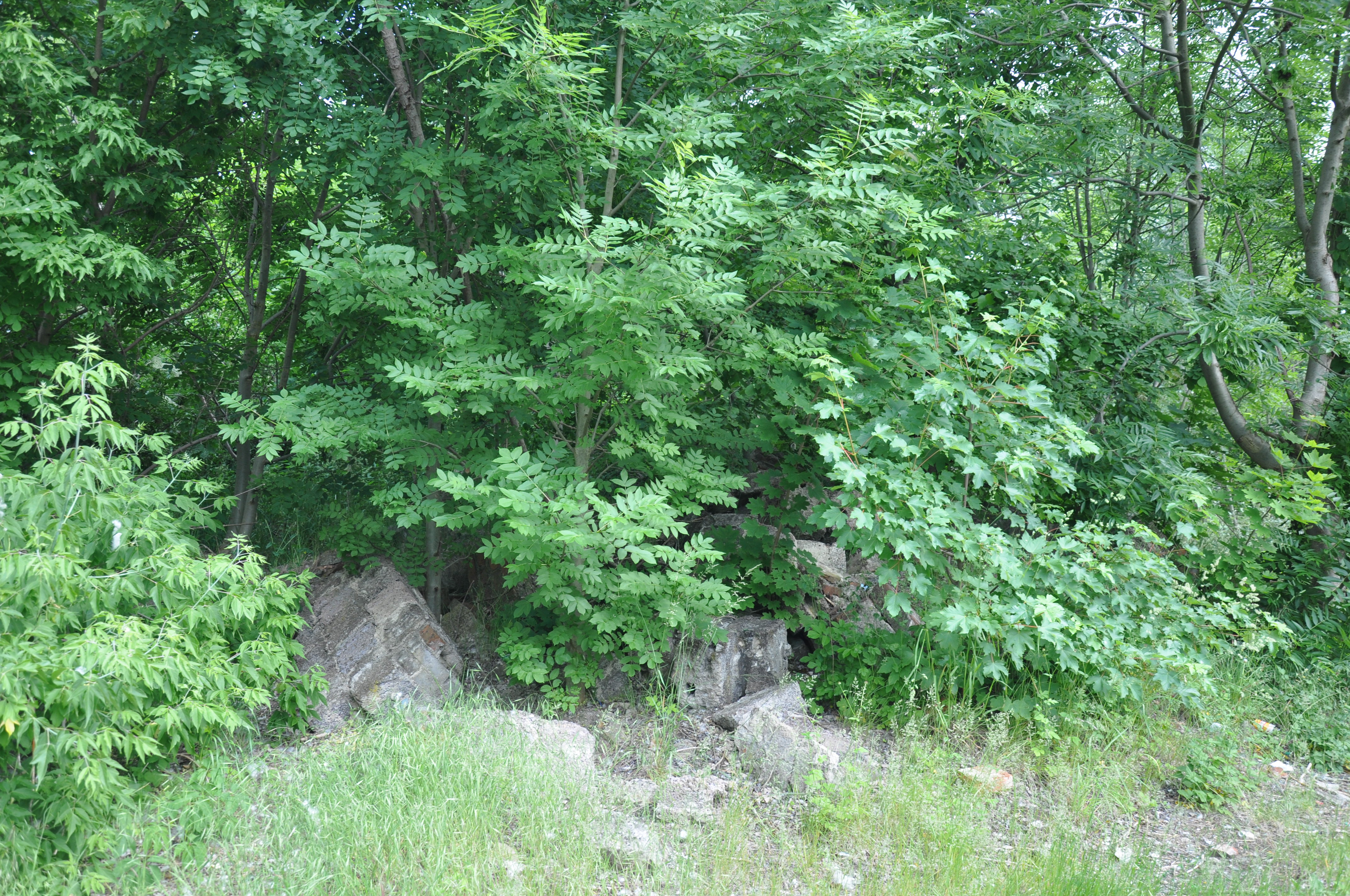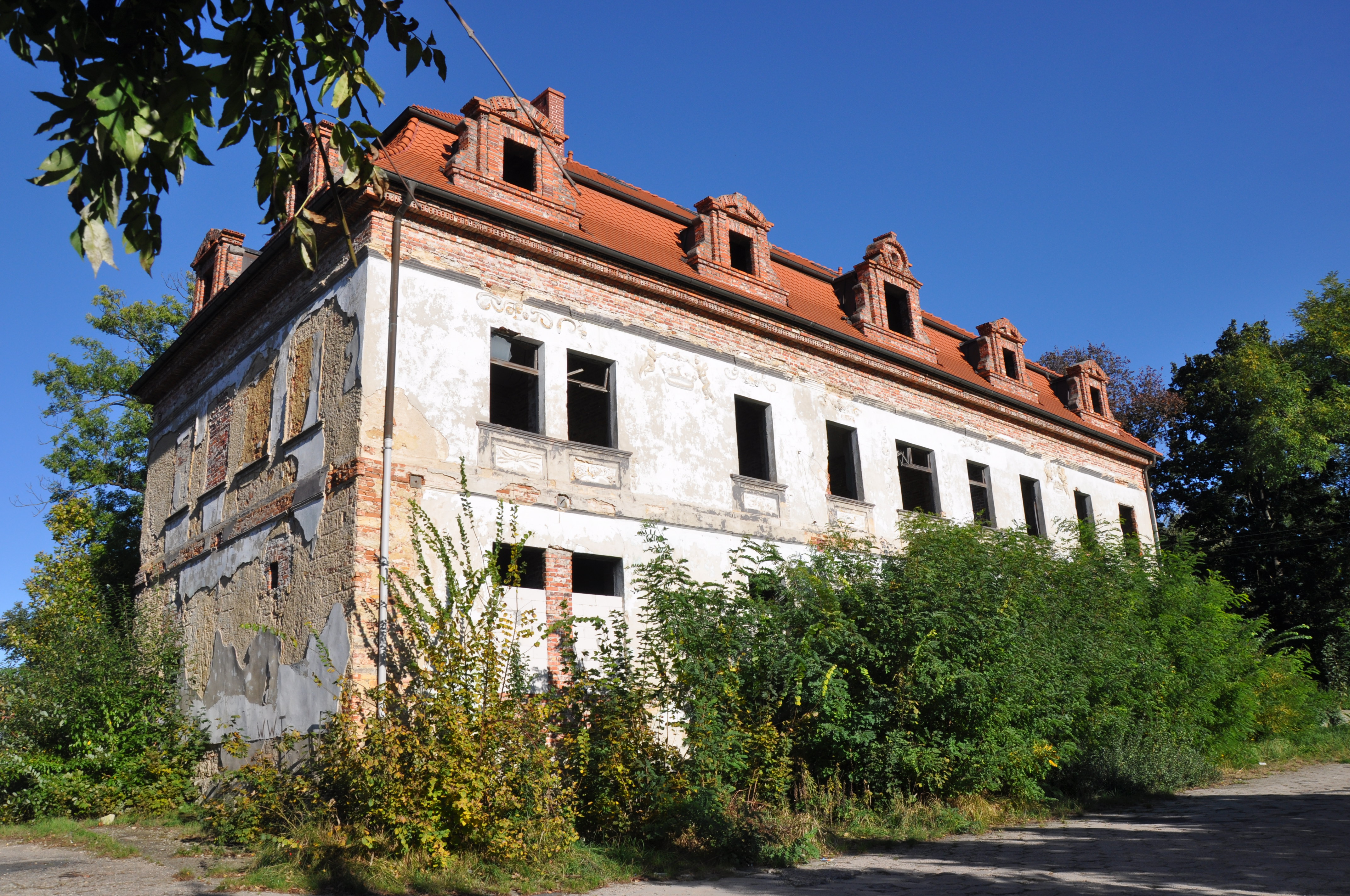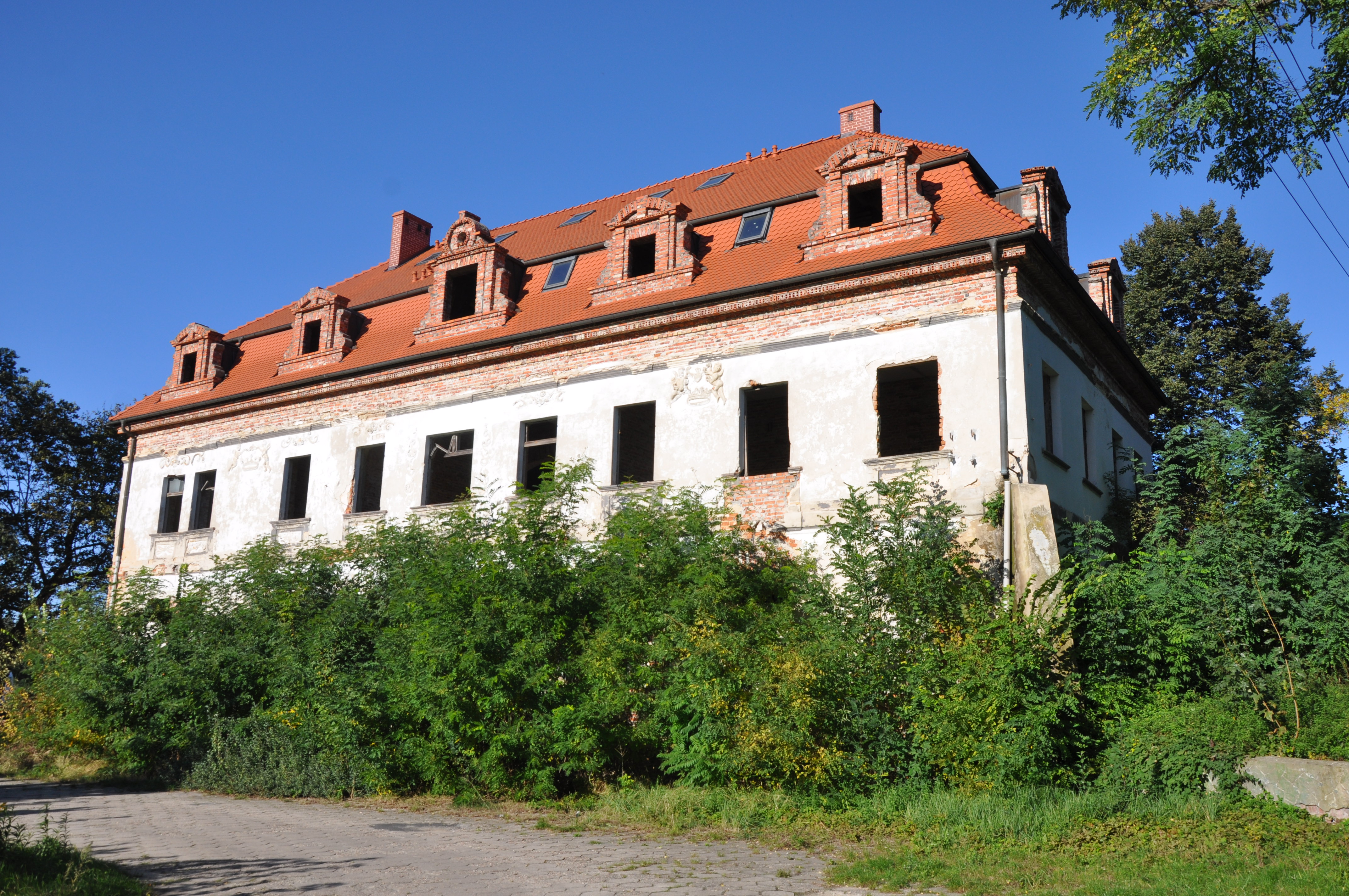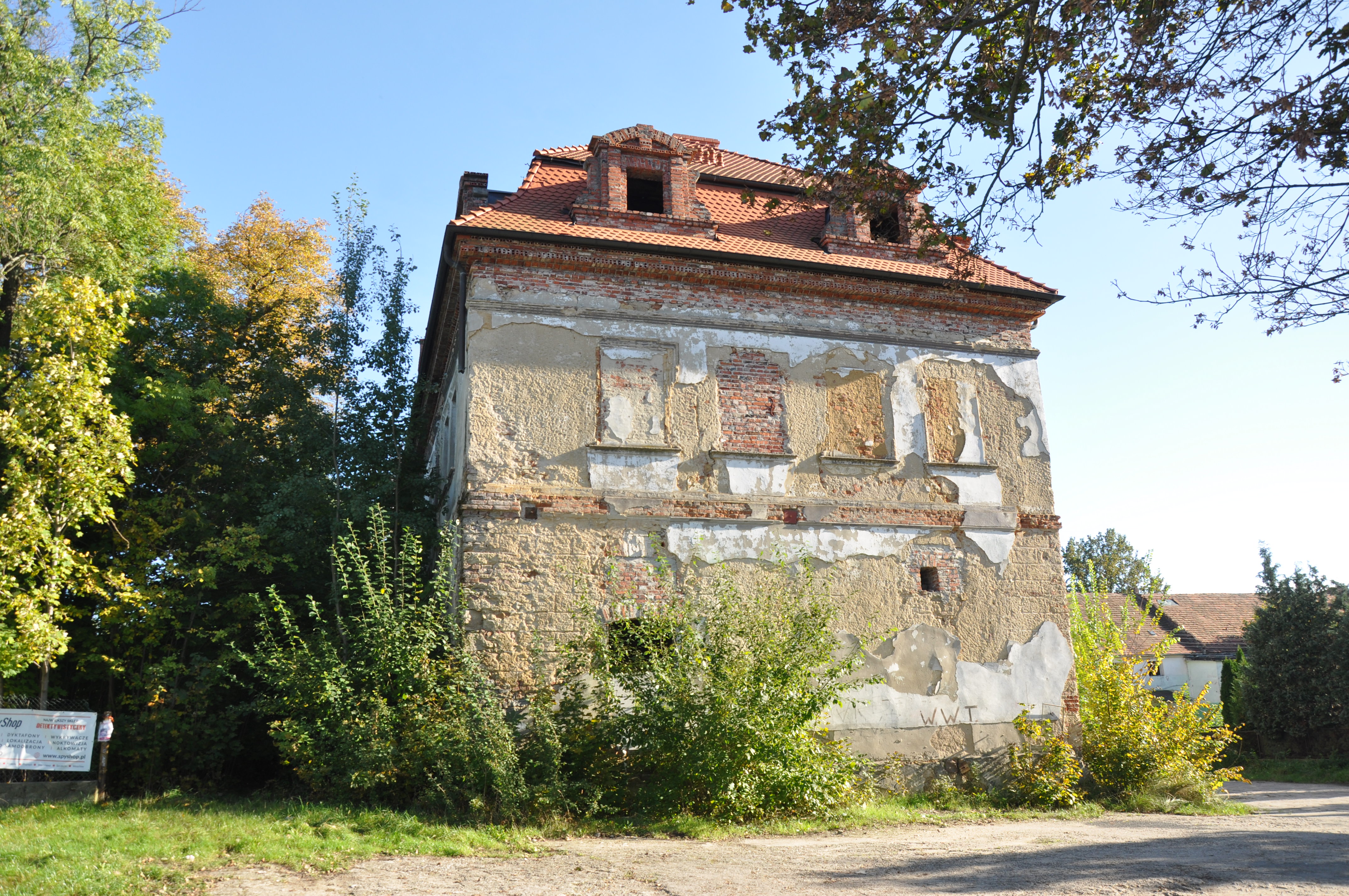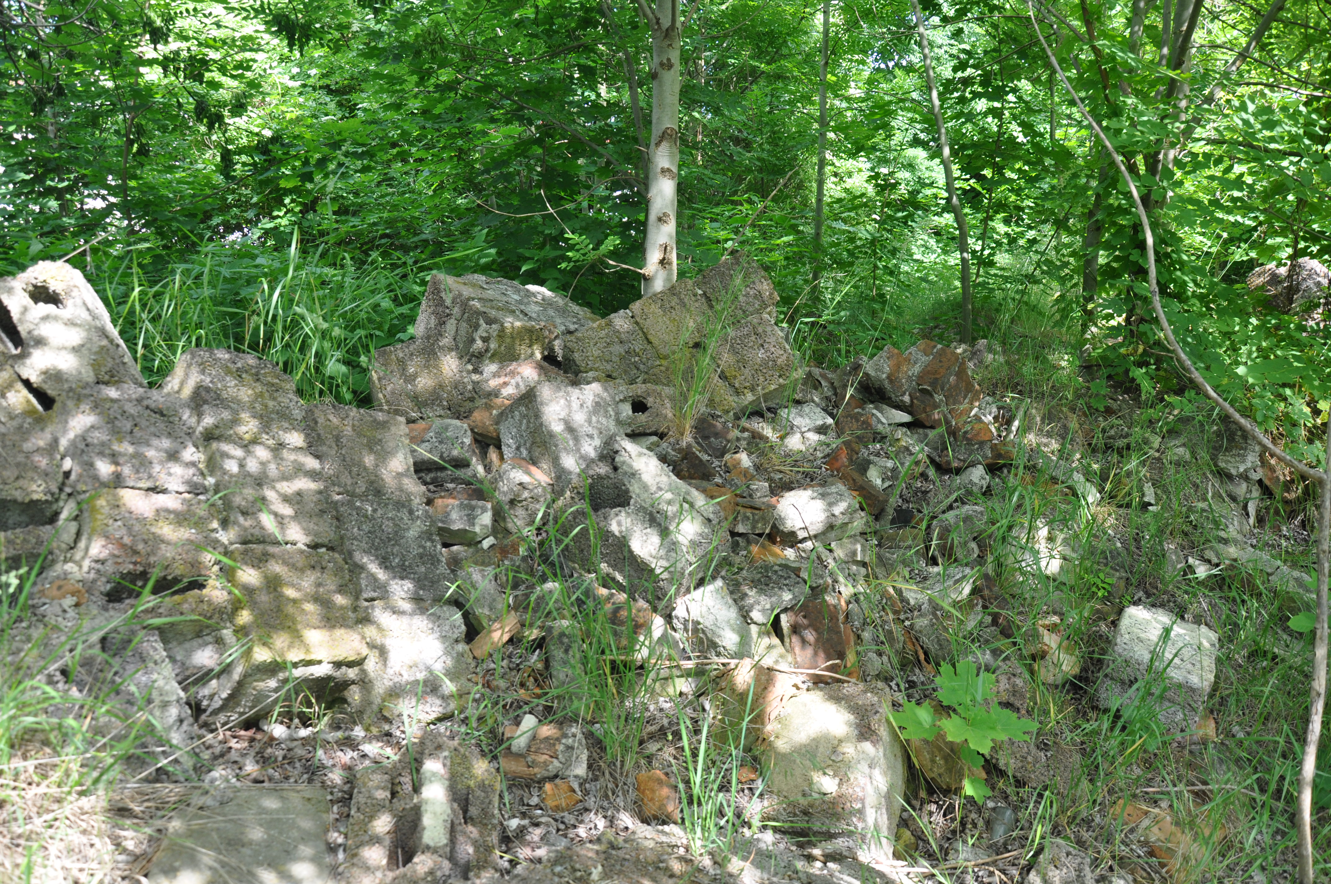 teren na wschód od dworu, gdzie wg ryciny powinien stać pierwotny dwór, kilkadziesiąt metrów na E można znaleźć gruzowisko...no właśnie, czego?