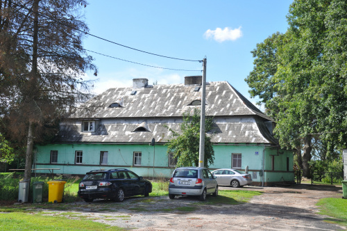 dwór w miejscu starszego założenia, oczywiście żadnych reliktów nie było widać, do piwnic dostać się nie było możliwości