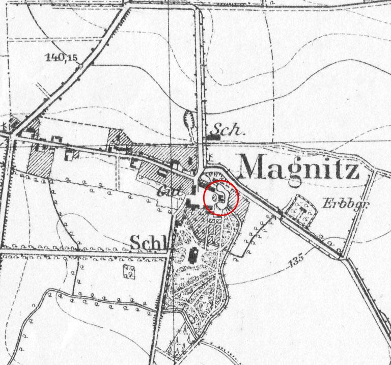 MAGNICE, fragment mapy Messtischblatt z lokalizacją obiektu