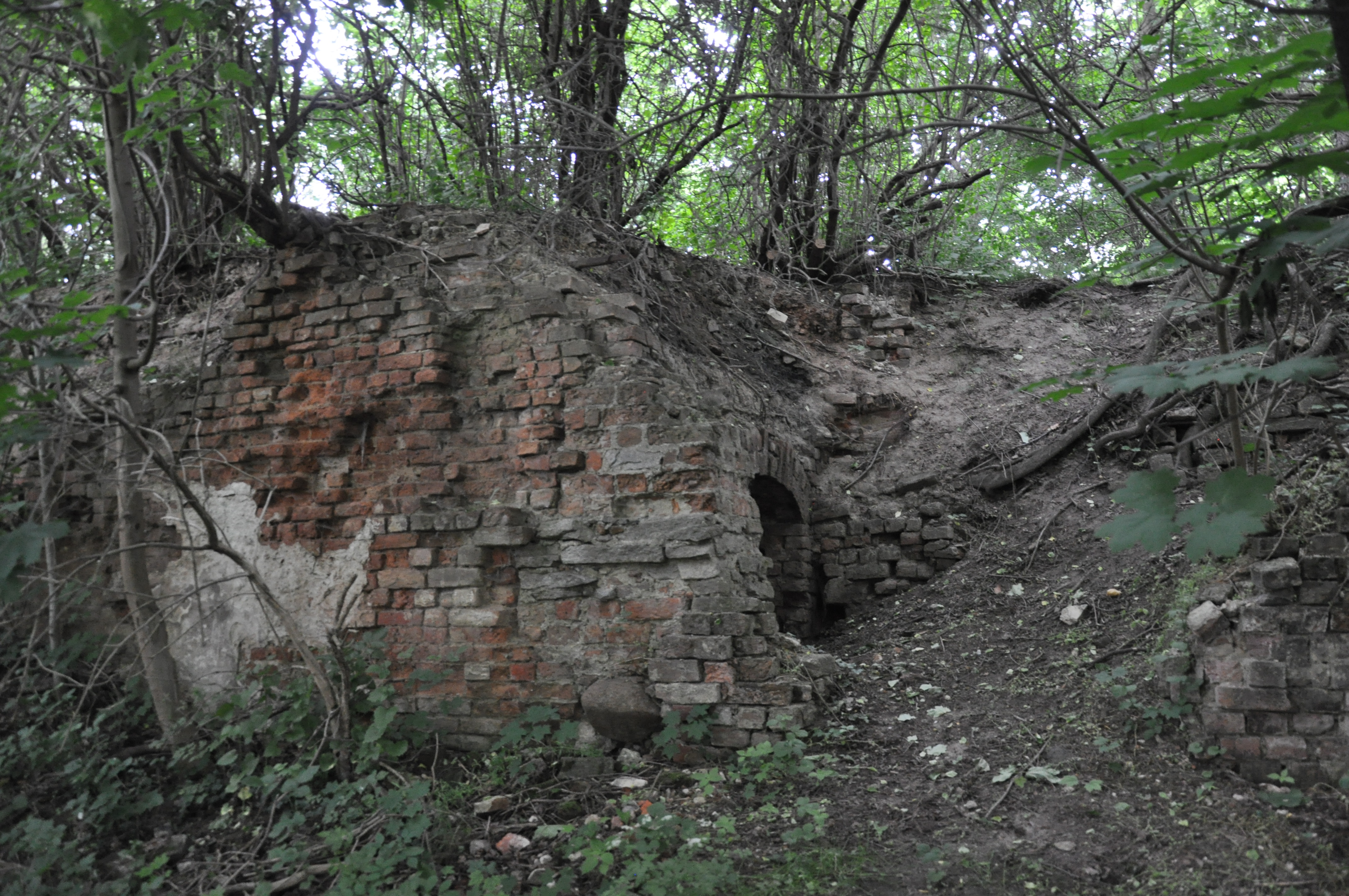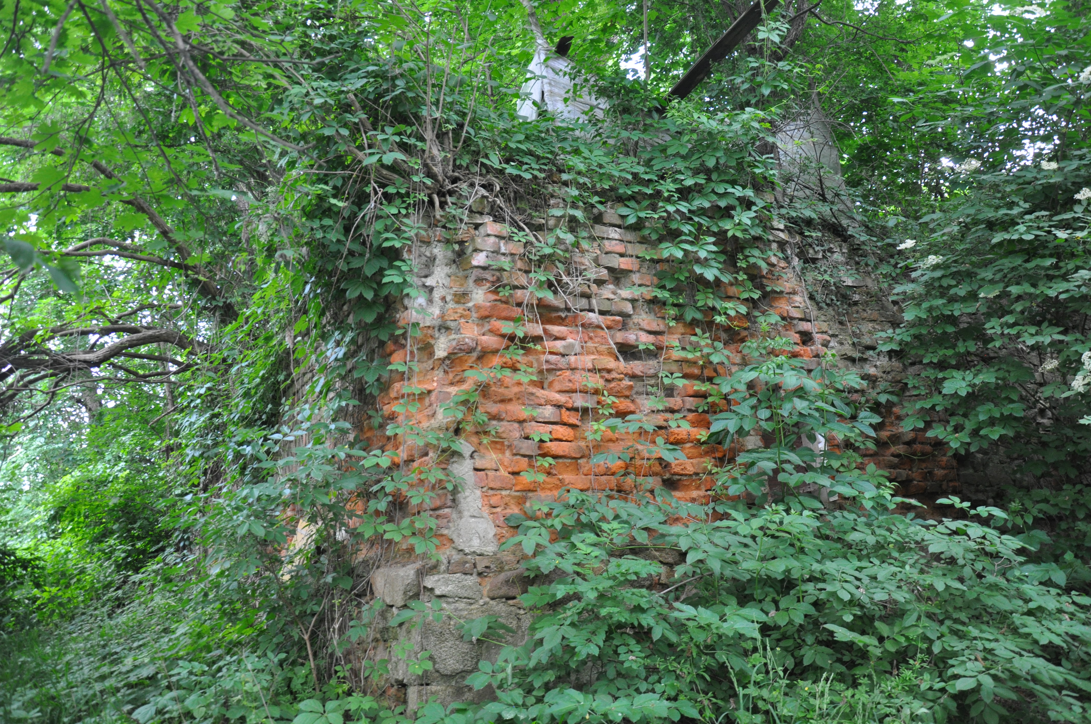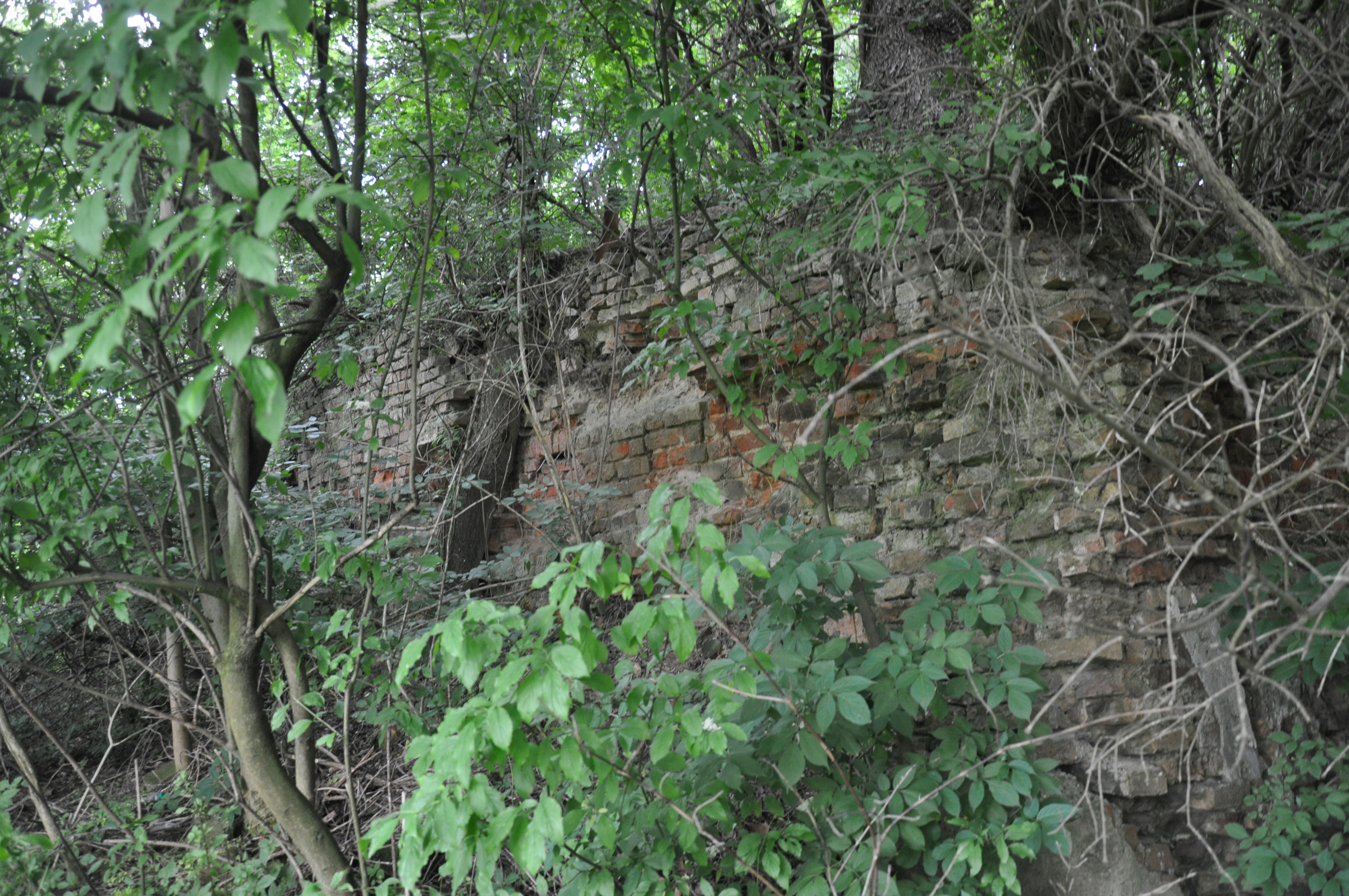widok ogólny na chaszcze z ruinami dworu