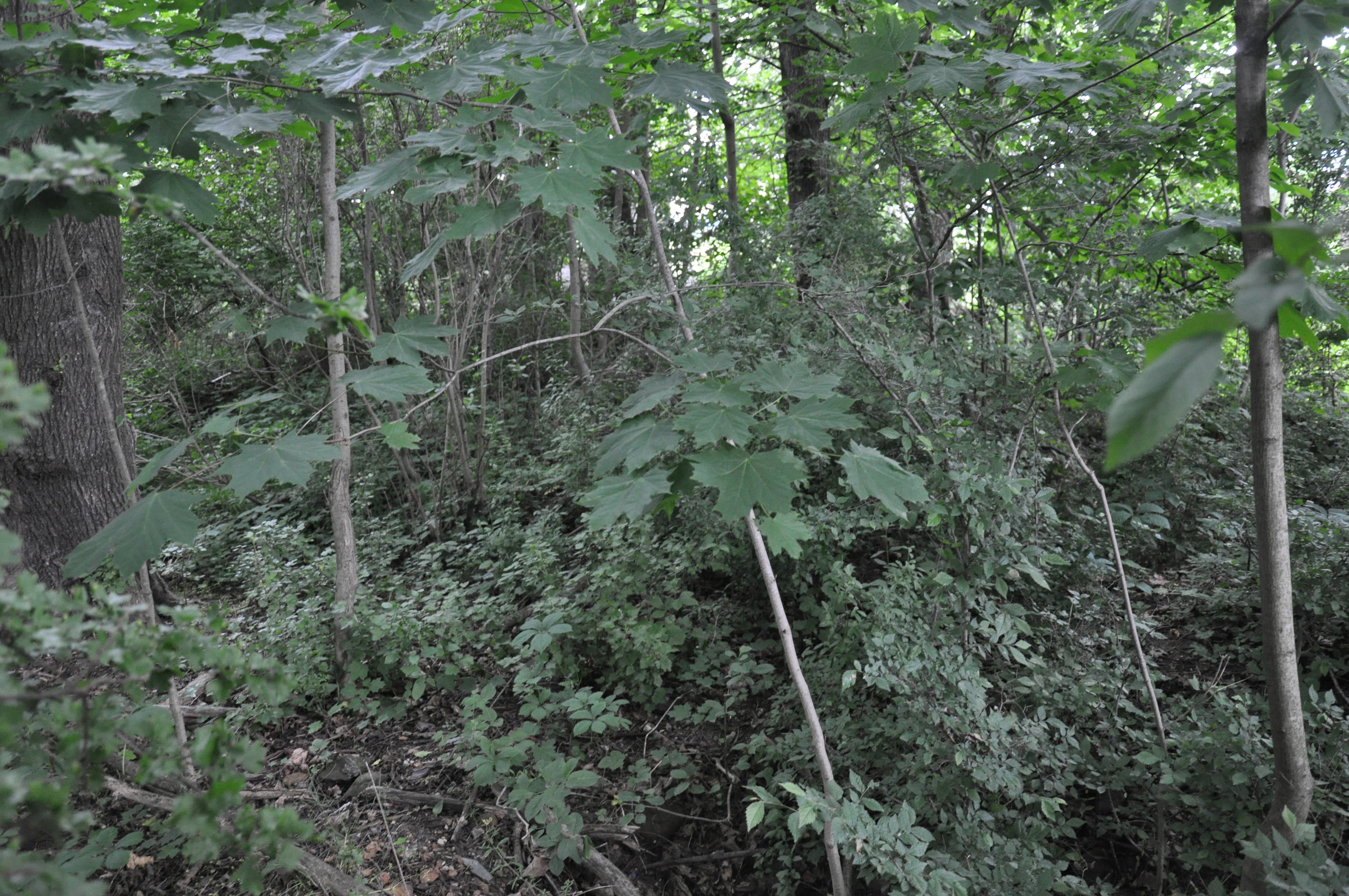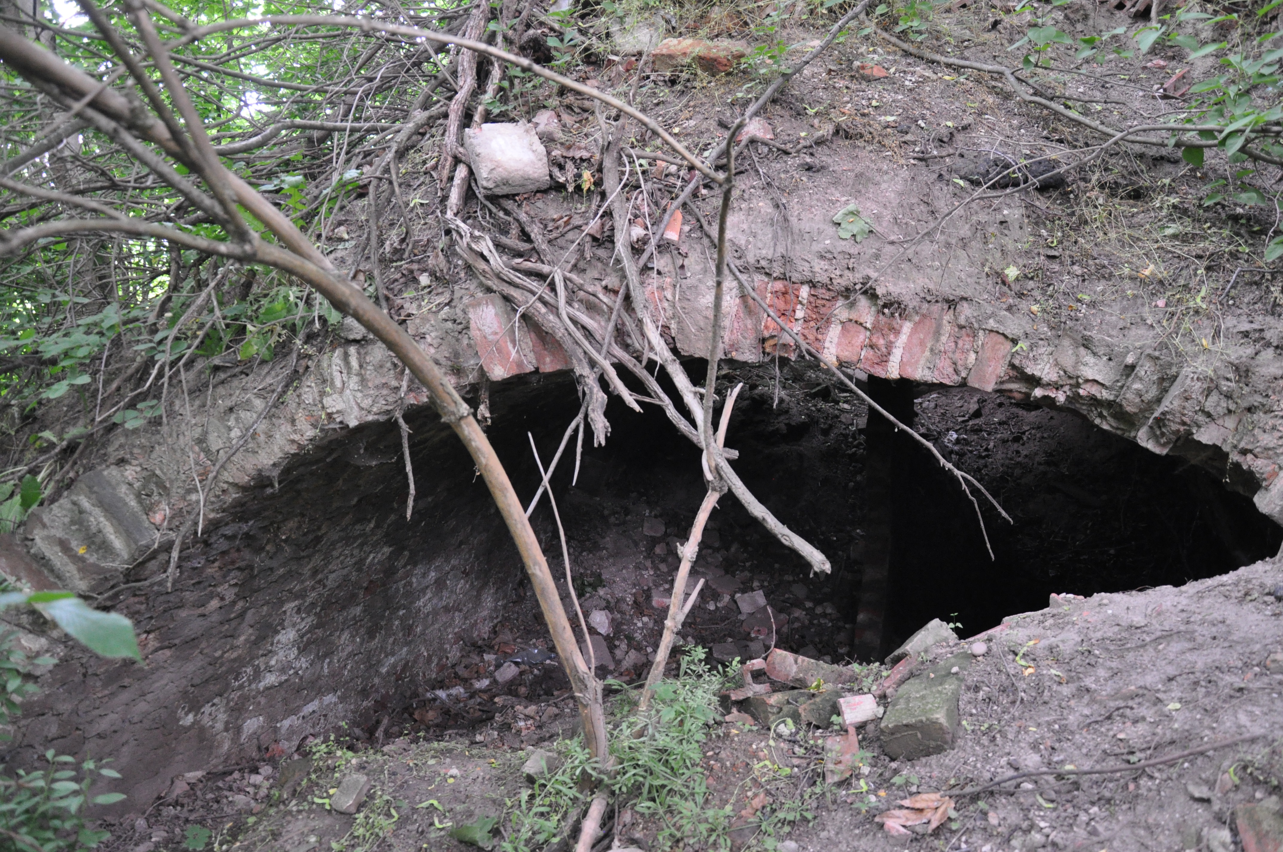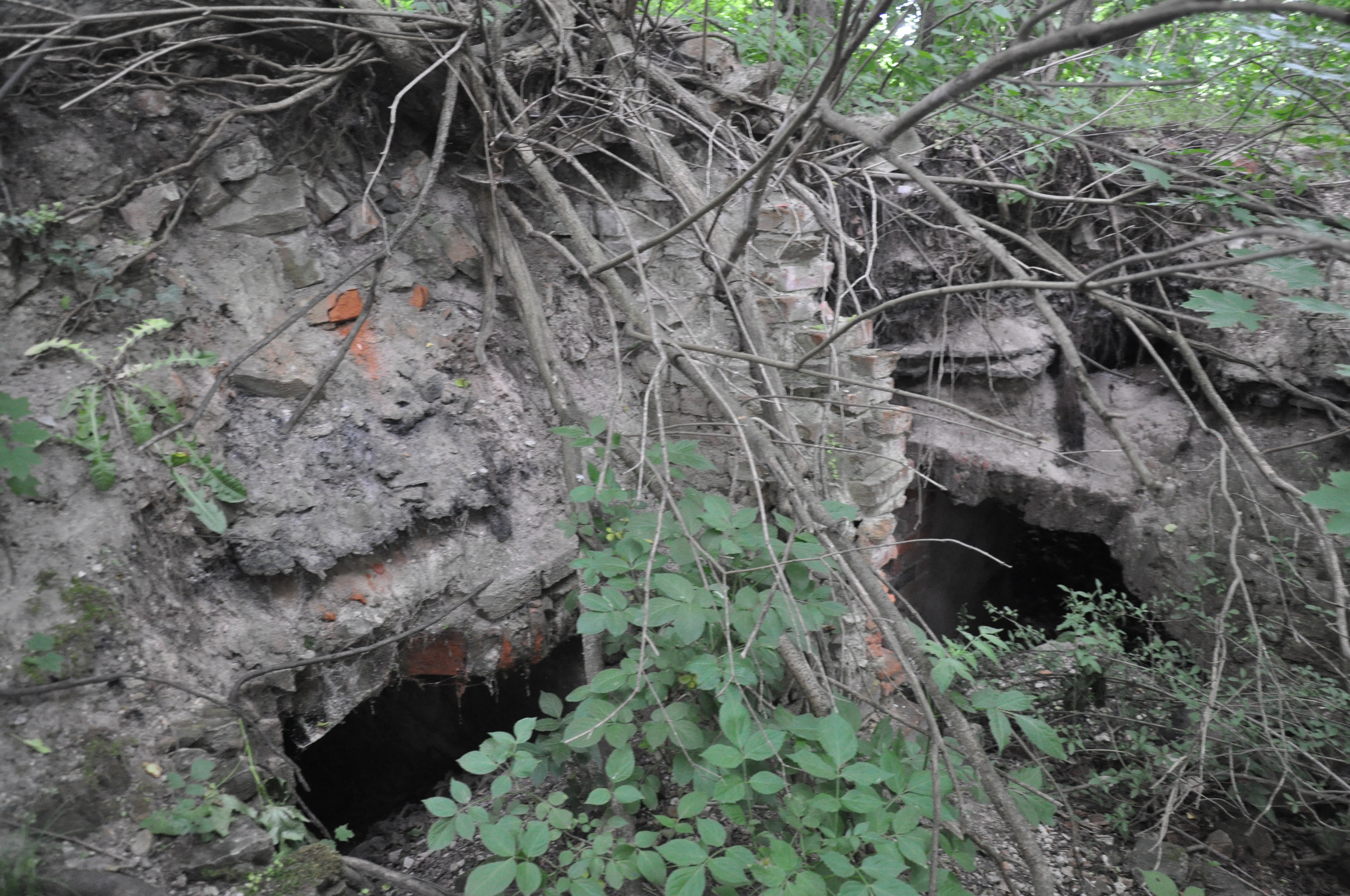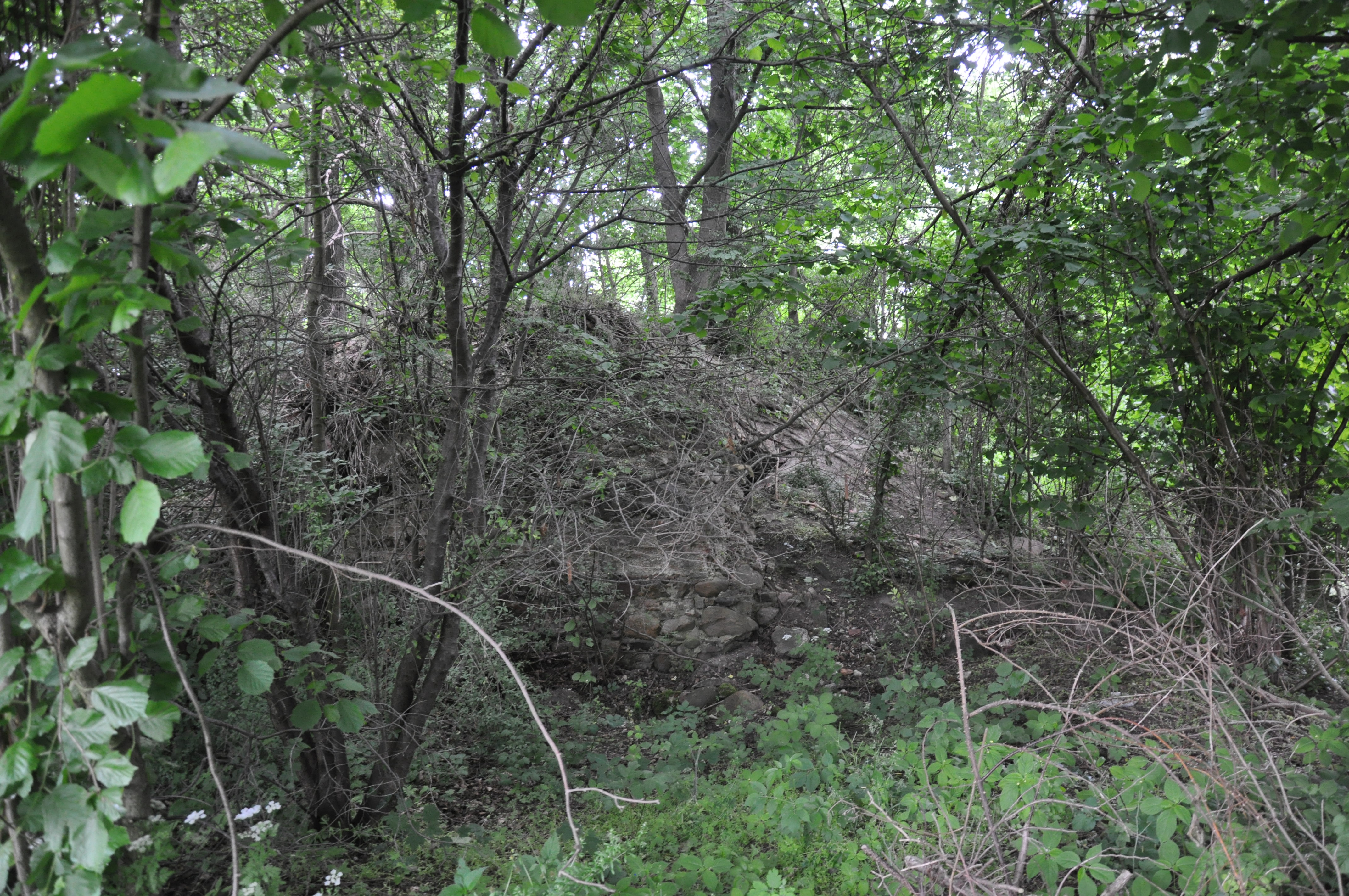 widok ogólny na chaszcze z ruinami dworu