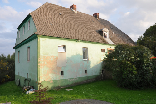 Nowożytny dwór murowany założony na planie prostokąta o wymiarach 12,5x25m. Dwór wzniesiono na majdanie starszego założenia, którym głównym elementem był ziemny kopiec o średnicy u podstawy ok 40m, otoczony fosą. Obecnie założenie znacznie przebudowane, m.in zasypana fosa, w której miejscu w części E założono staw.