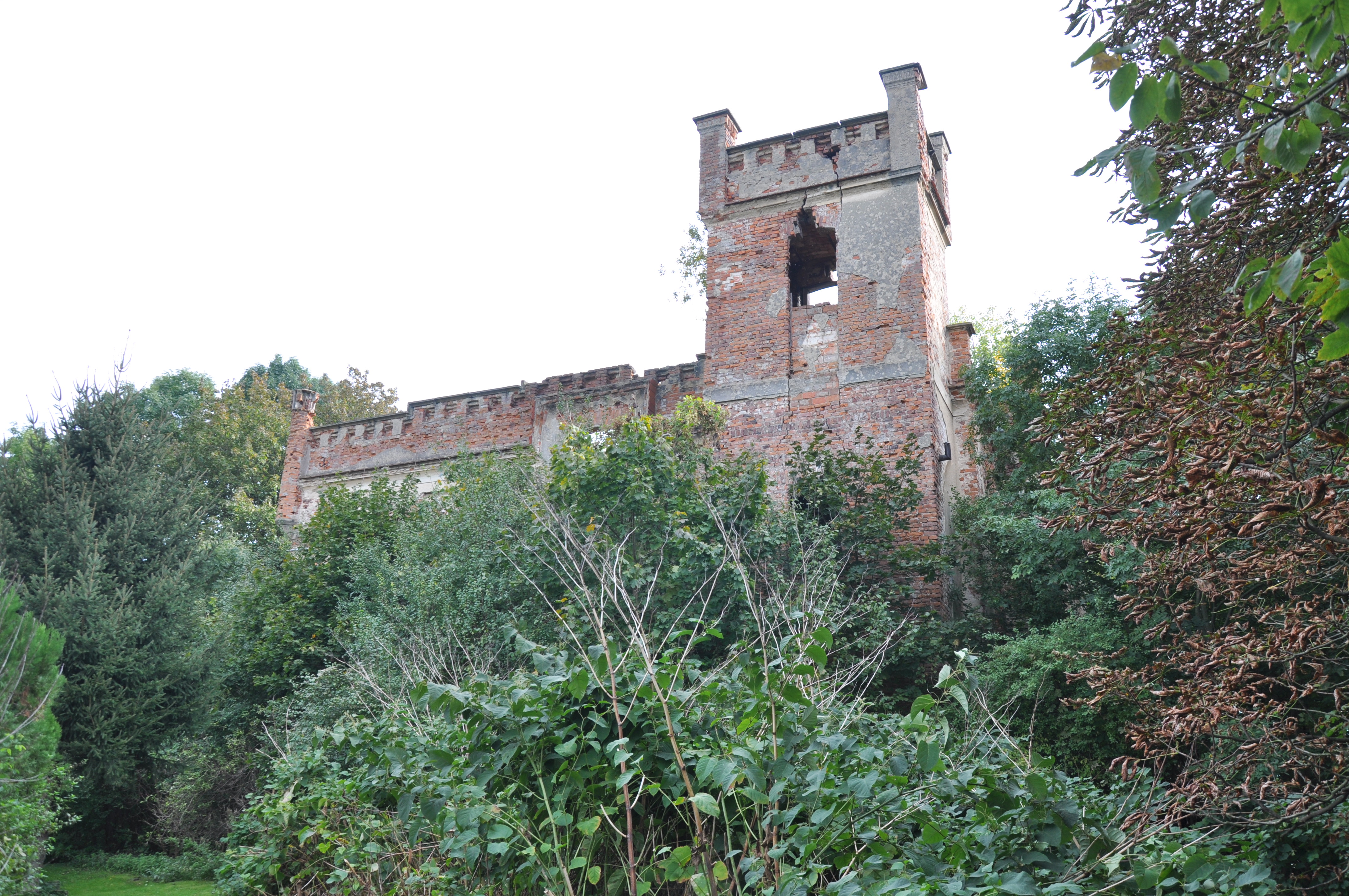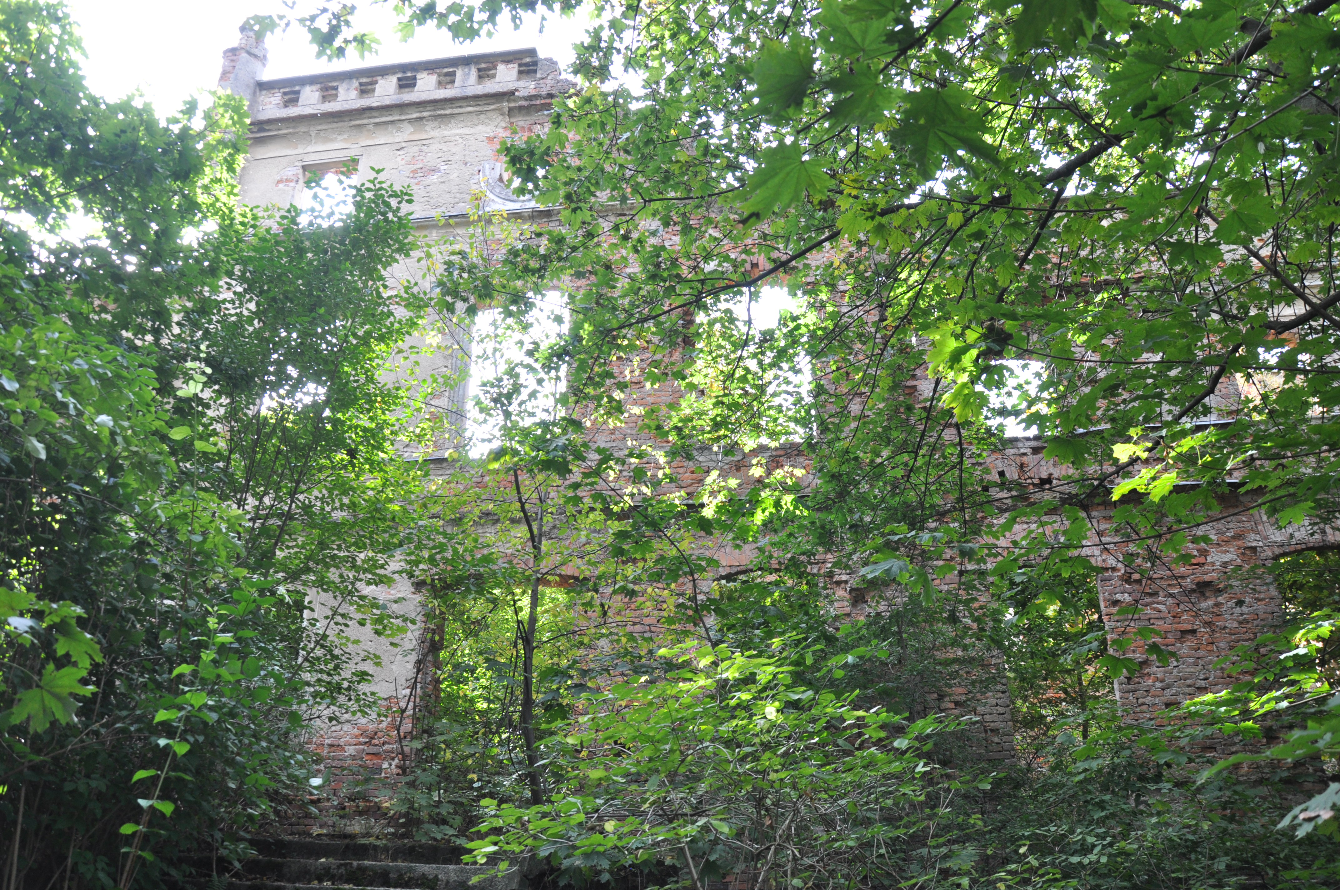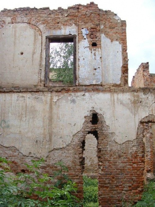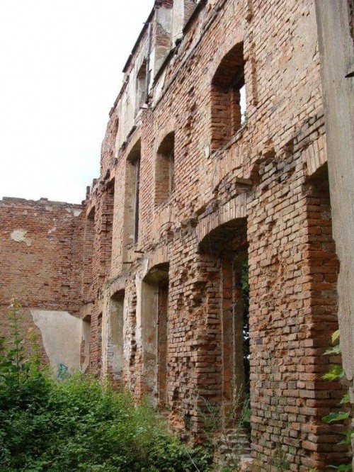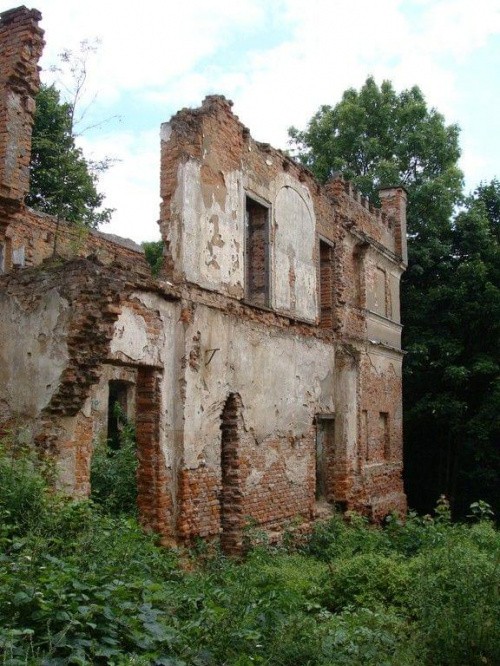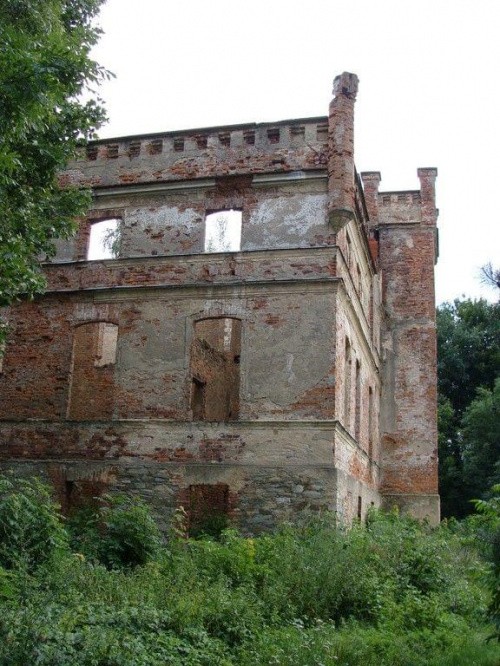 Zdjęcia ruin z 21 lipca 2012 roku. Również nie zwiedziłem dolnych partii pałacu. Odstraszyli mnie miejscowe pijaczki którzy urządzili sobie w środku libacje alkoholowe. Nie chciałem prosić się o kłopoty no i tez czas mnie naglił.