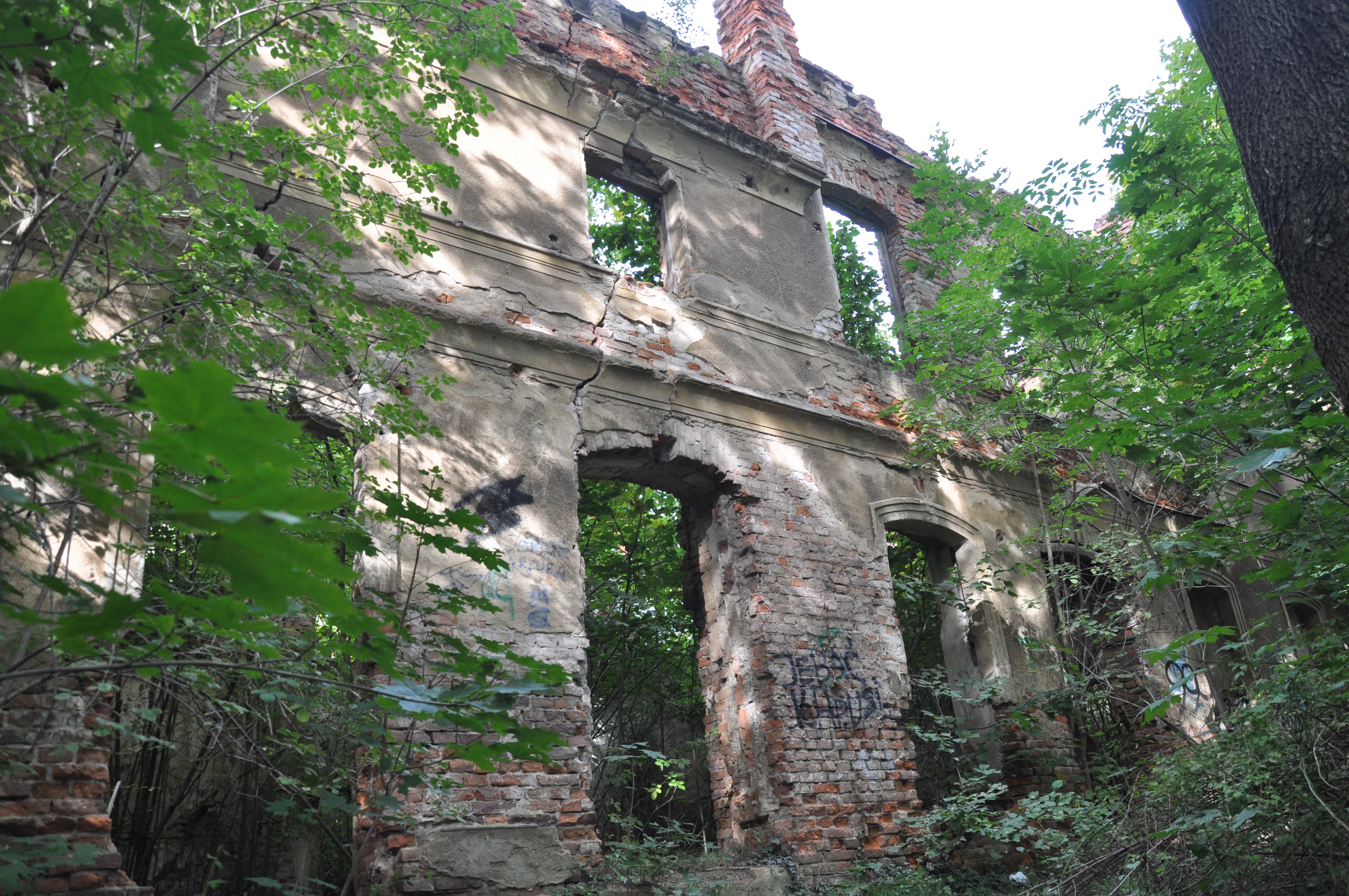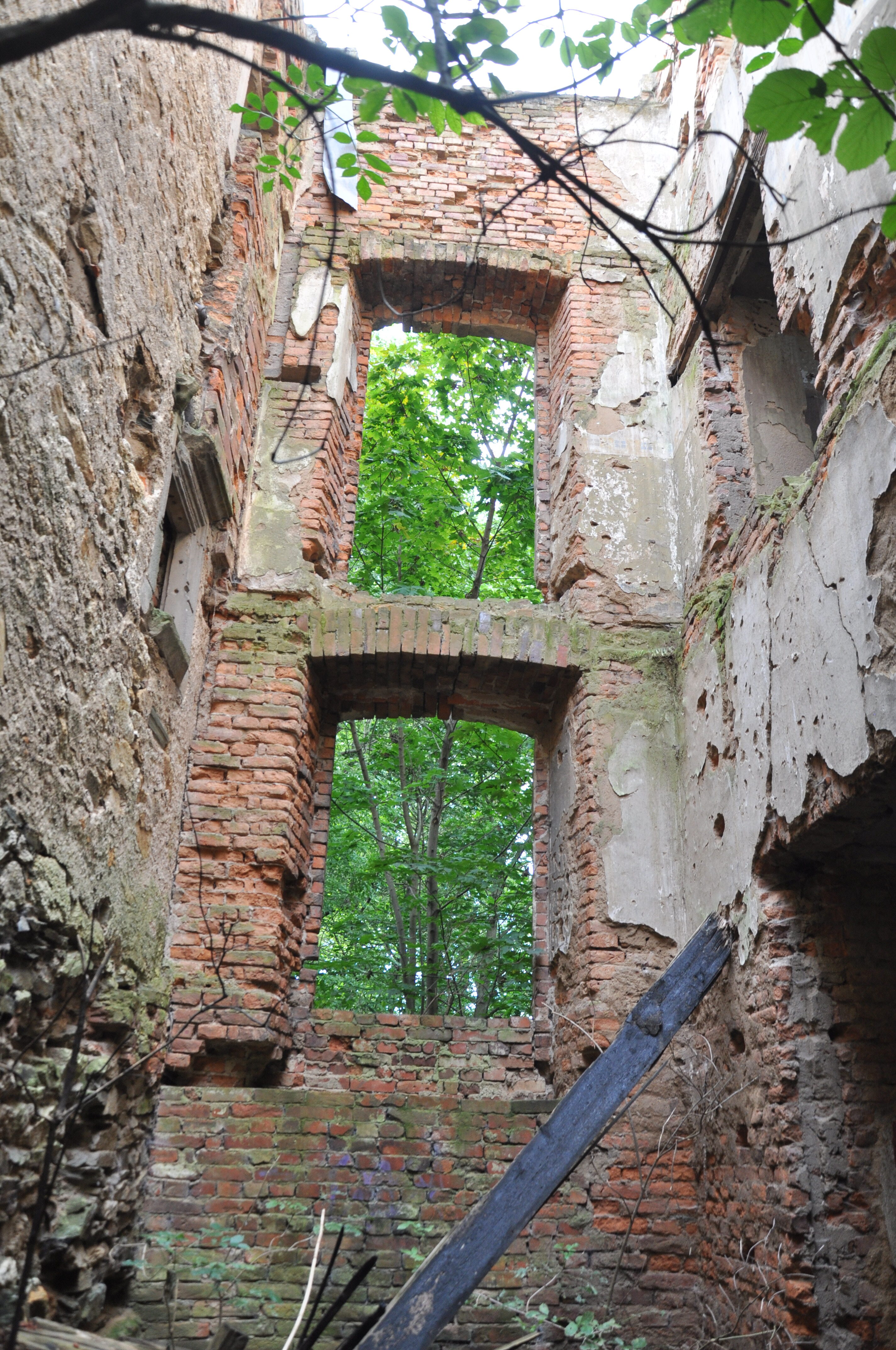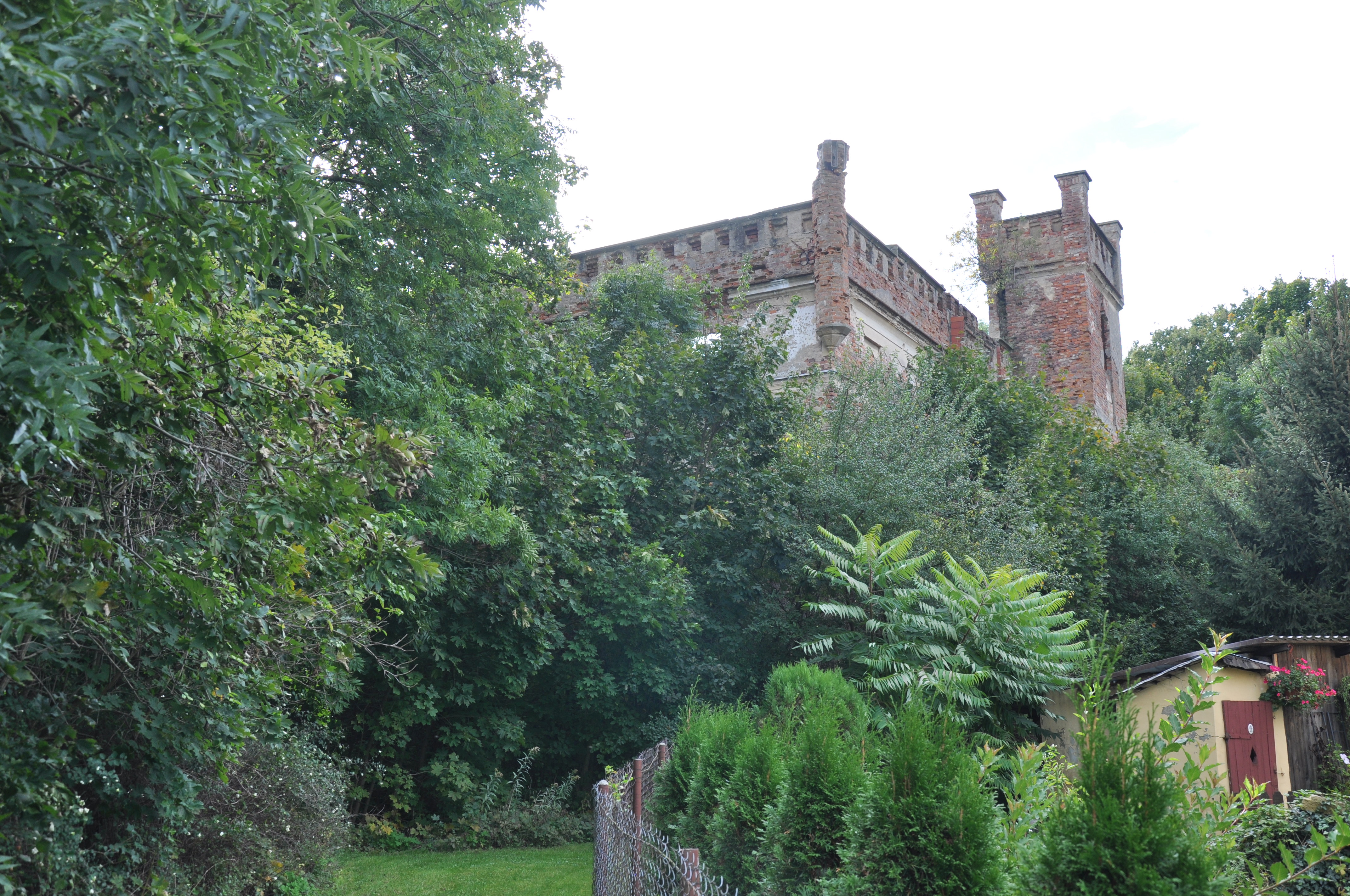 Zdjęcia ruin z 21 lipca 2012 roku. Również nie zwiedziłem dolnych partii pałacu. Odstraszyli mnie miejscowe pijaczki którzy urządzili sobie w środku libacje alkoholowe. Nie chciałem prosić się o kłopoty no i tez czas mnie naglił.