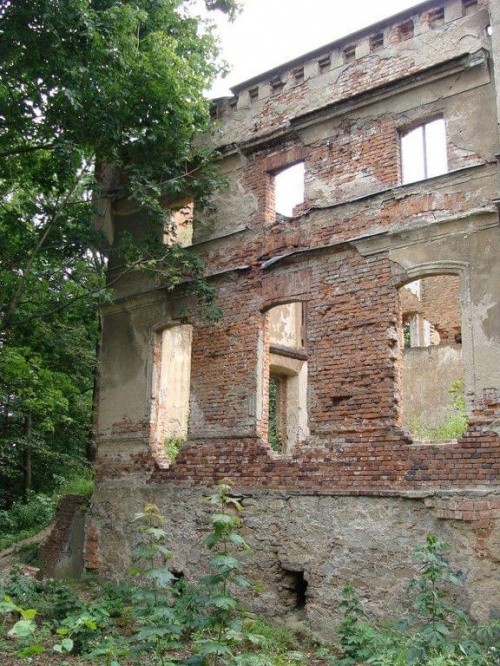 We wsi znajdują się ruiny pałacu przebudowanego w XVIII wieku z obronnej wieży datowanej na XVI wiek. W połowie XIX wieku został przebudowany w stylu neogotyckim. Zniszczony w czasie II wojny od tej chwili pozostaje opuszczony obracając się w ruinę. Obiekt jest czworoboczny z południowymi ryzalitami dawnej wieży mieszkalnej i skrzydła wschodniego. Na parterze dawnej wieży z XVI wieku zachowało się sklepienie kolebkowe z lunetą.