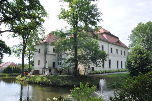 Dwór, pierwotnie obronny, otoczony fosą z wodą, renesansowy, został wzniesiony około 1620 roku wg projektu Antona Fodige a gruntownie przebudowamy w 1824 roku. Z założenia renesansowego zachował się jedynie portal główny, wg napisu dzieło Jana Polla. Jest to założenie czworoboczne, sześciotraktowe, dwukondygnacjowe, nakryte dachem mansardowym z powiekami. We wnętrzu, na parterze, zachowało się kilka sklepionych sal i obszerna sień.