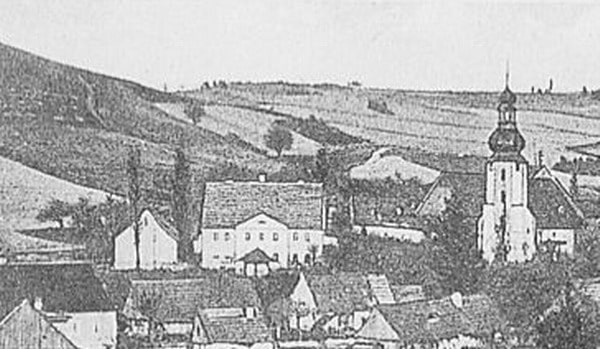 Dwór na początku XX wieku (na lewo od kościoła)