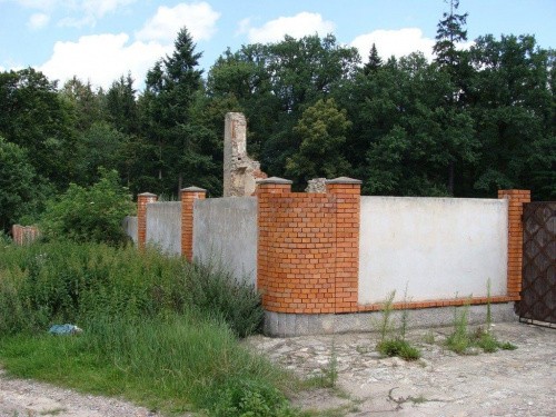 obecnie teren prywatny, otoczony wysokim murem obiekt zarośnięty, właściciel nieprzyjazny
