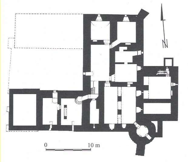 Plan dworu na poziomie piwnic wg B.Krzyślaka 1979